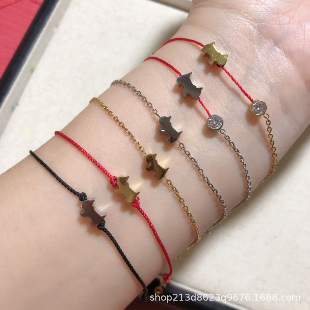 钛钢不掉色法式AG幸运红绳半链小狗手链女潮轻奢小众简约气质