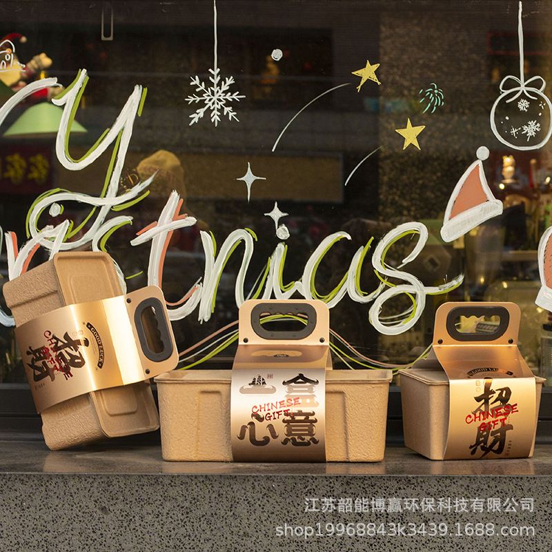 元旦新年春节礼盒纸浆盒喜庆送礼包装盒模塑年会礼品盒可降解