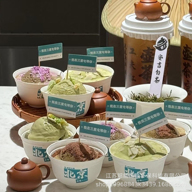 使い捨てアイスクリーム激凌蓋碗茶箱中国式茶碗国風ボールパルプ碗ヨーグルト碗蓋付き