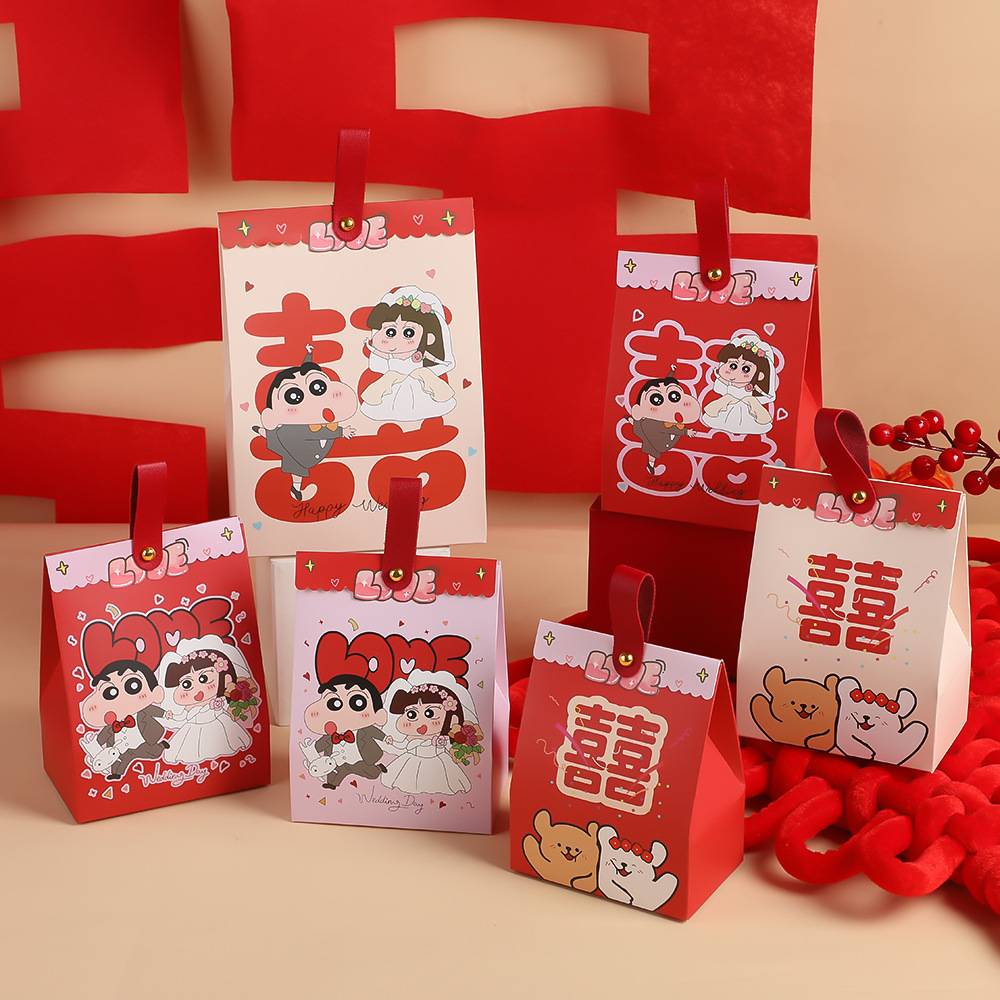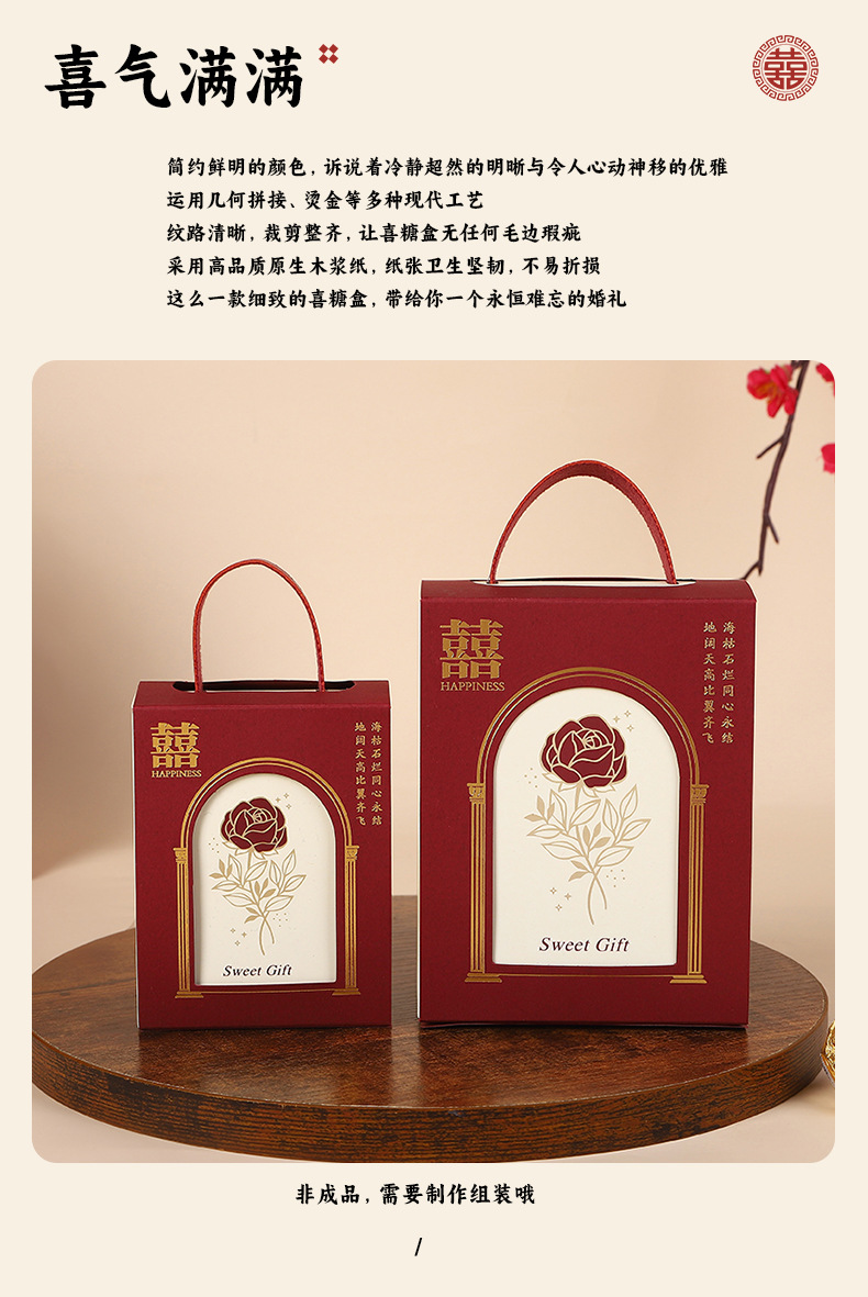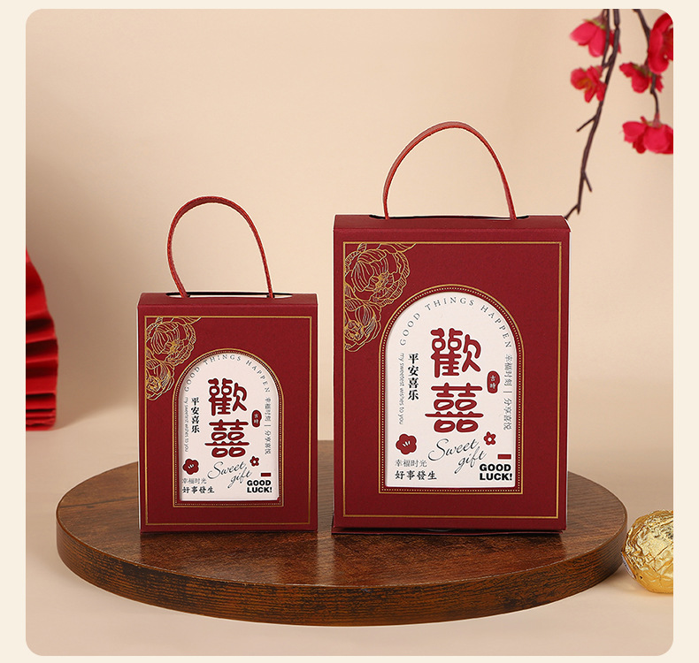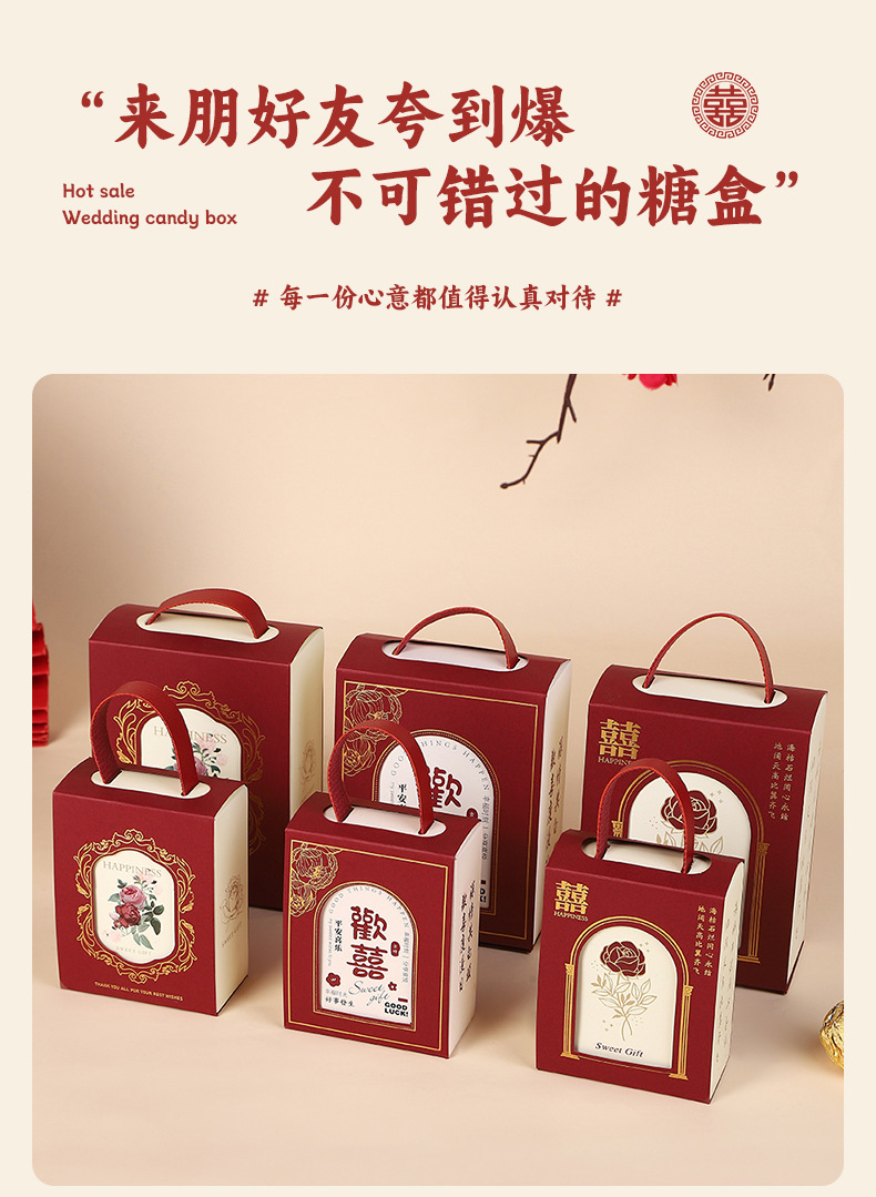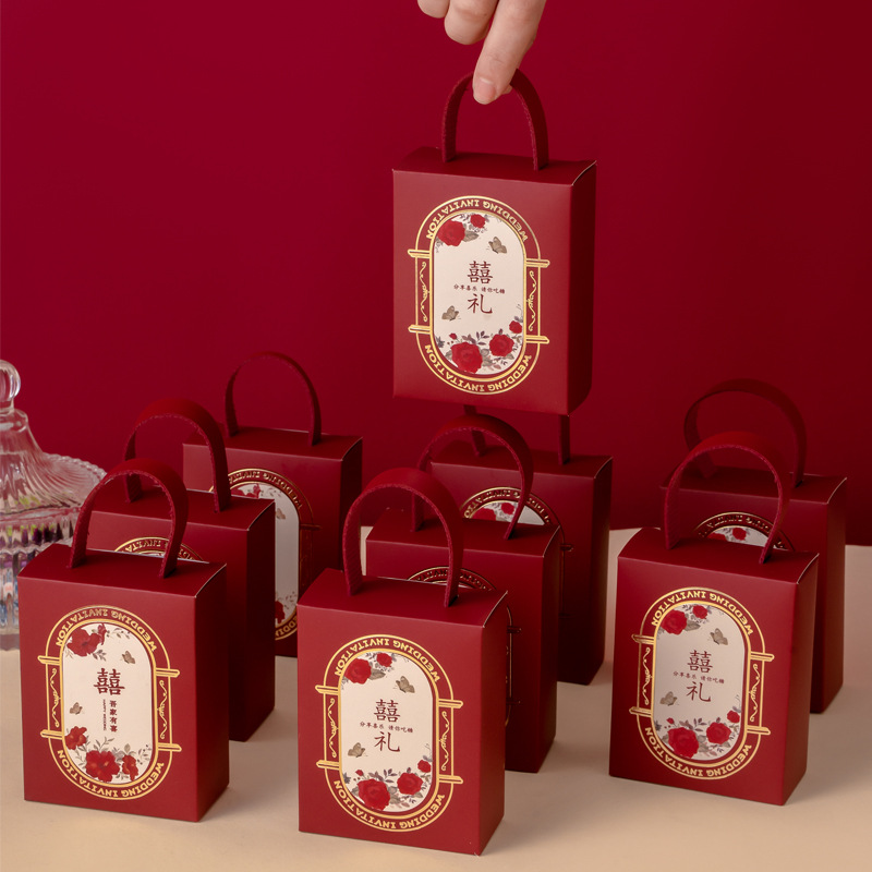 中国式手提げ喜糖礼箱創意喜字喜糖袋キャンディー紙箱結婚祝い礼箱高級感角型礼箱