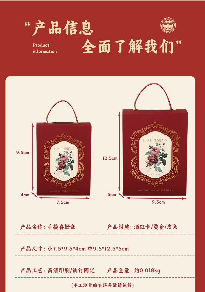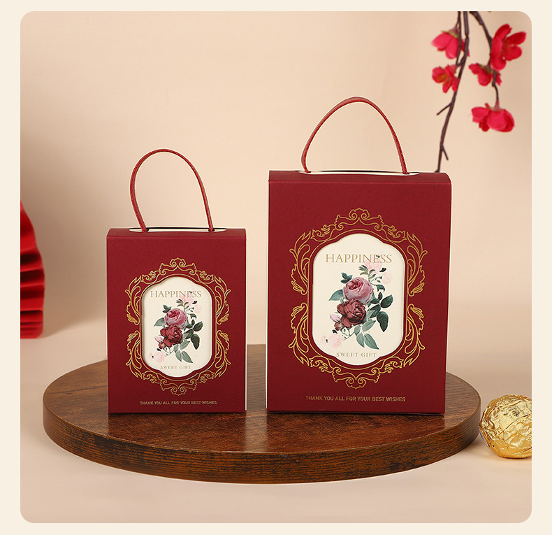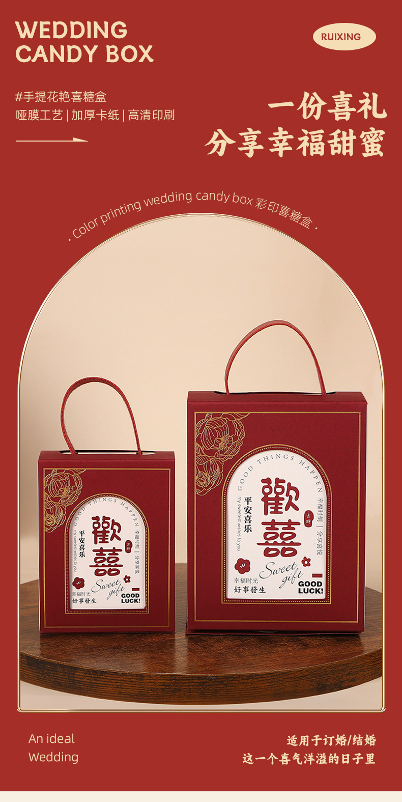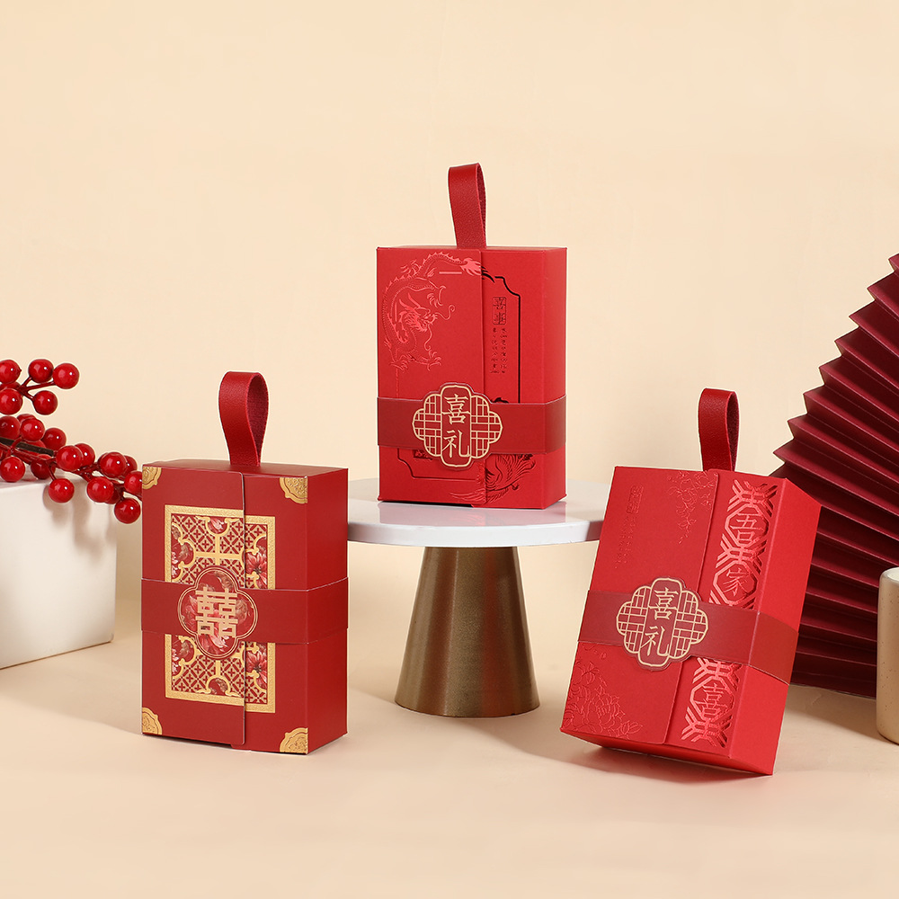 中国式手提げ喜糖礼箱創意喜字喜糖袋キャンディー紙箱結婚祝い礼箱高級感角型礼箱