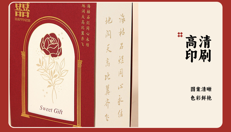 中国風のポータブルギフトボックス、ライト高級ホットスタンピング、私の家族の幸せな引き出しボックス、結婚式のギフトボックス、幸せな言葉が貼り付けられた空箱