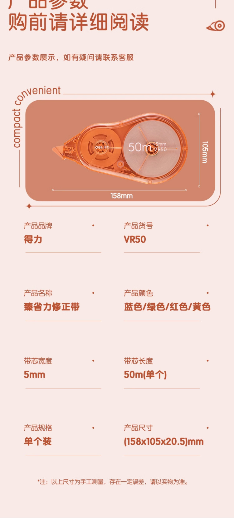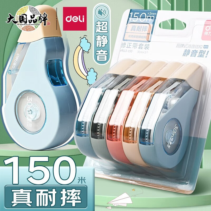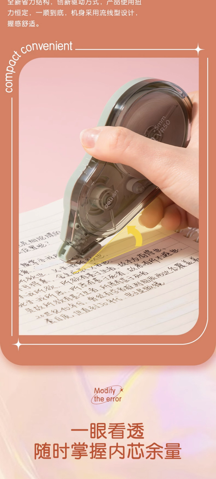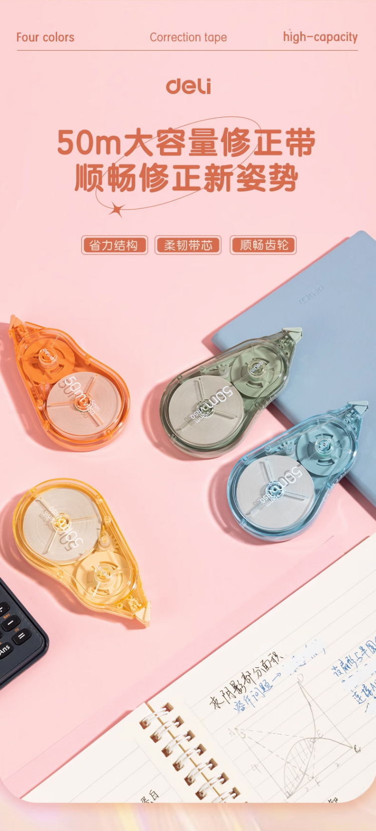 得力VR50大容量修正带省力学生专用装涂改带改正带批发顺滑耐摔
