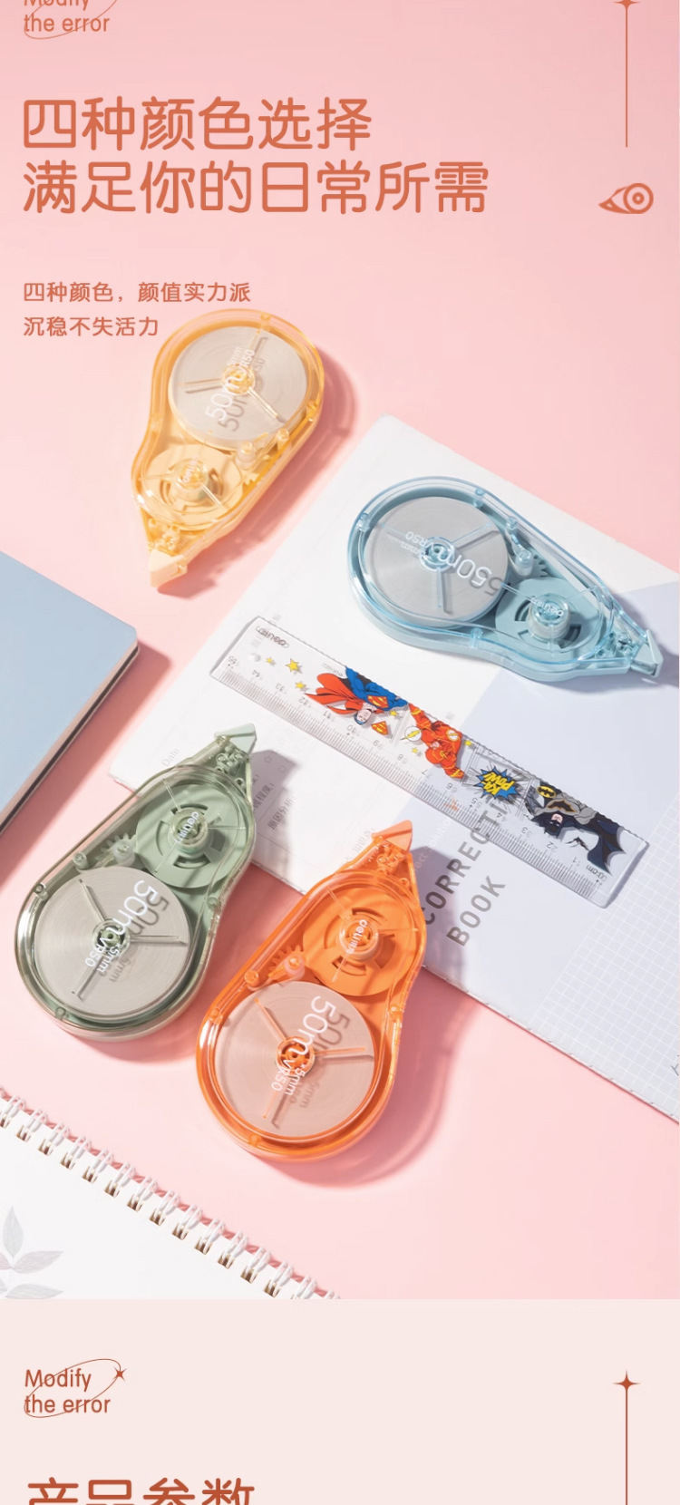 修正テープ大容量塗り替えテープ付き学生修正テープ修正ミステープ実恵装創意足米文房具卸売り