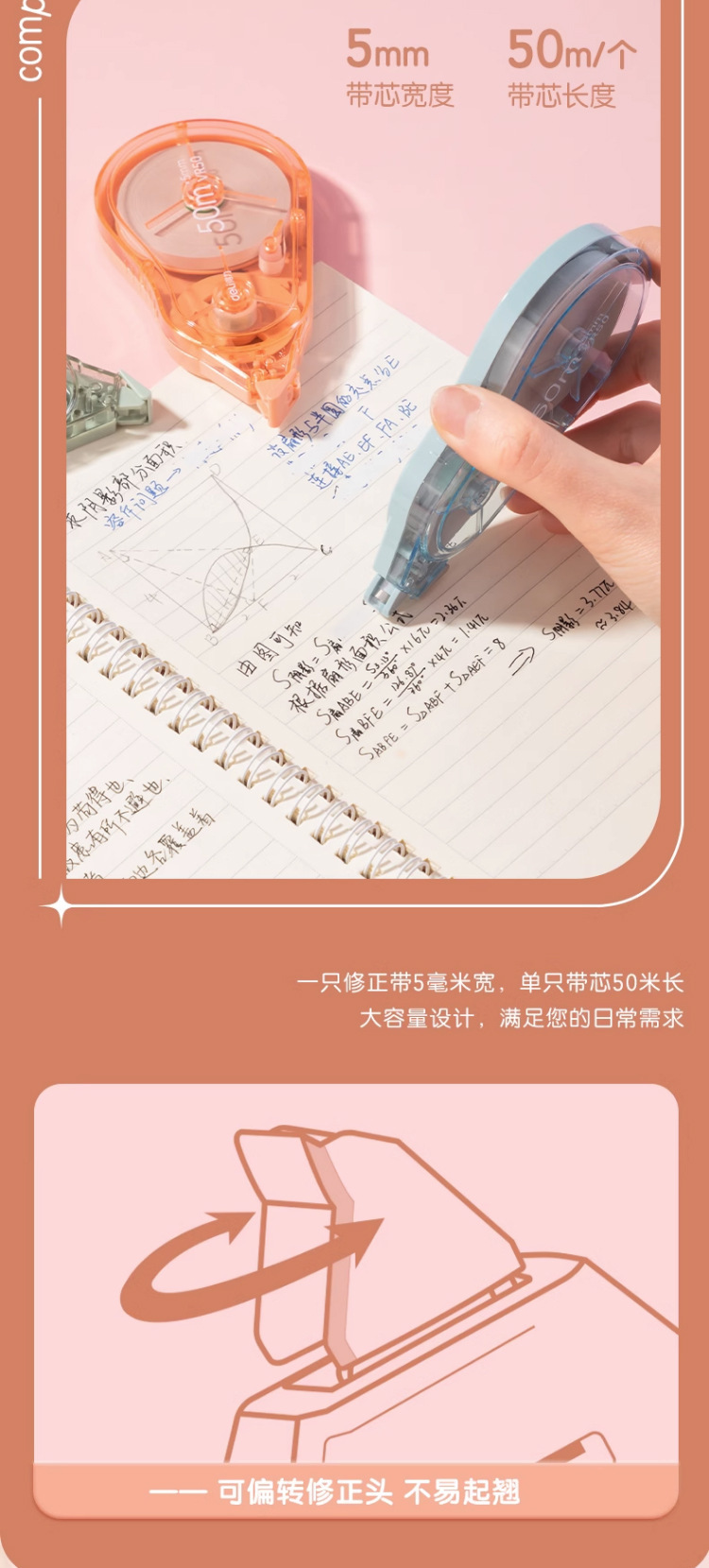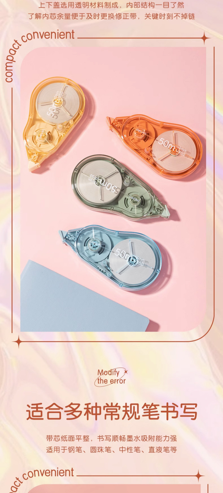 有力ペン型修正テープセット交換可能芯修正テープ学生用修正テープ押し式高颜値