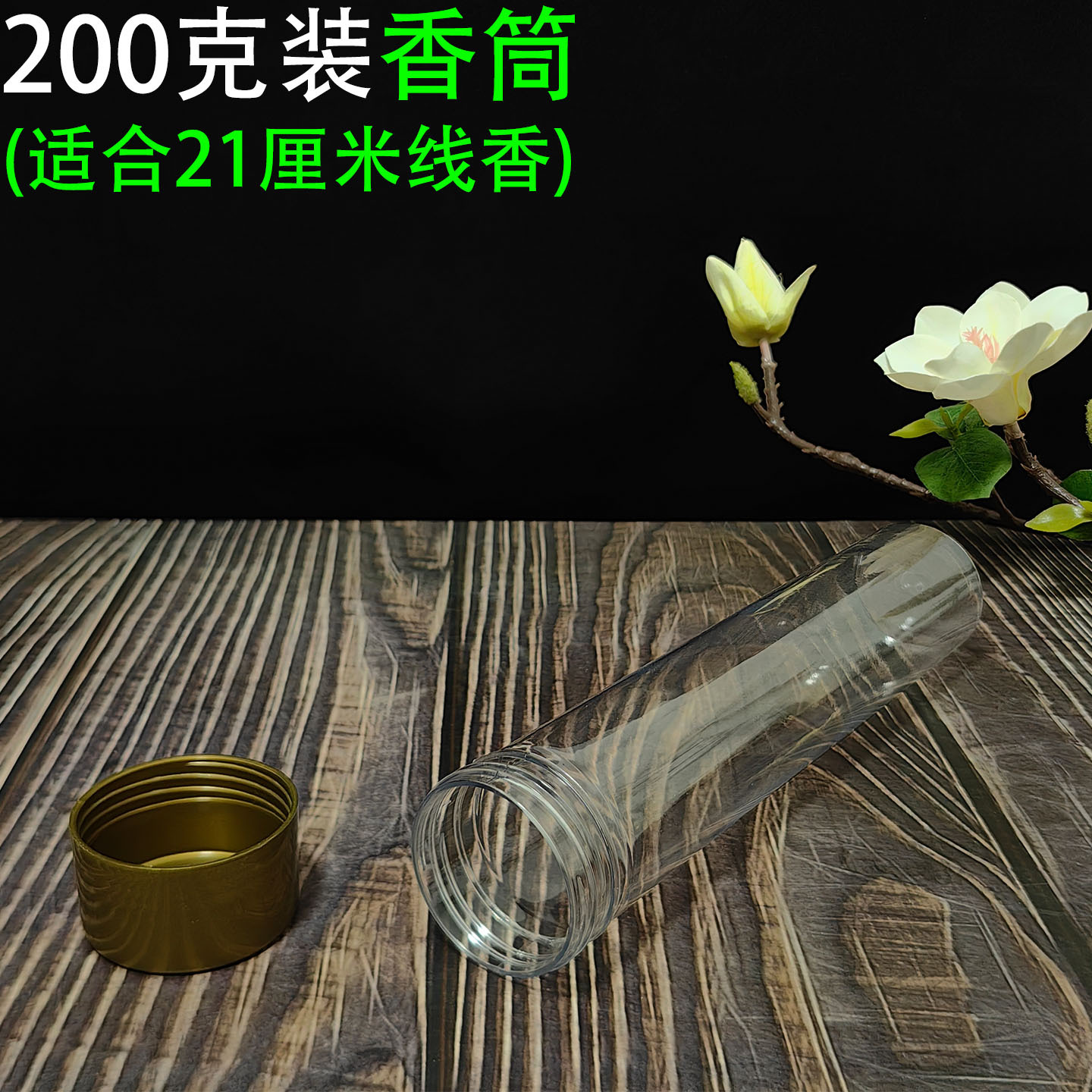 200克装线香筒 透明塑料螺旋盖卧香管大容量圆桶沉香檀香料分包装