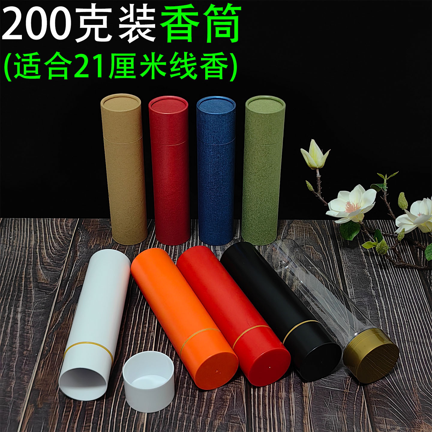 200克装线香筒 圆形卧香管彩色塑料密封防潮卧香桶沉檀香料包装储
