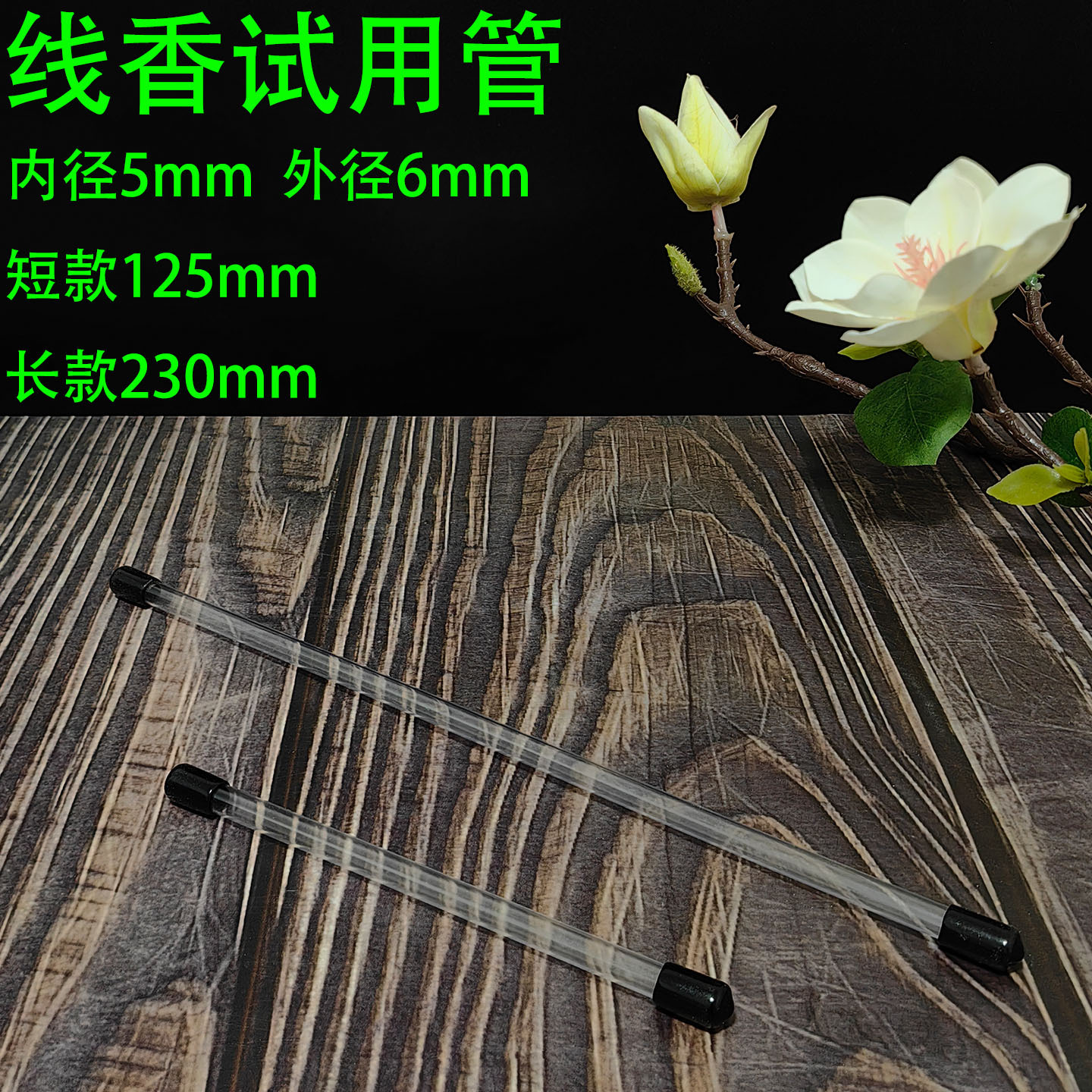 お線香お試しパック、プラグ付き透明チューブ、アクリル香管、白檀沈香テイスティングお試しパック、サンプル包装箱
