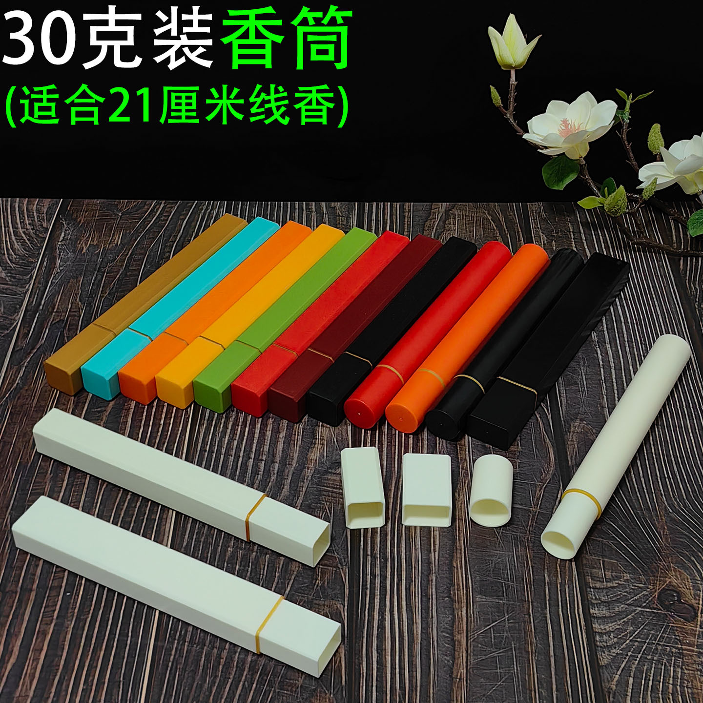 線香筒30グラムはマルチカラーのプラスチック管を入れて防湿密封して貯蔵します。