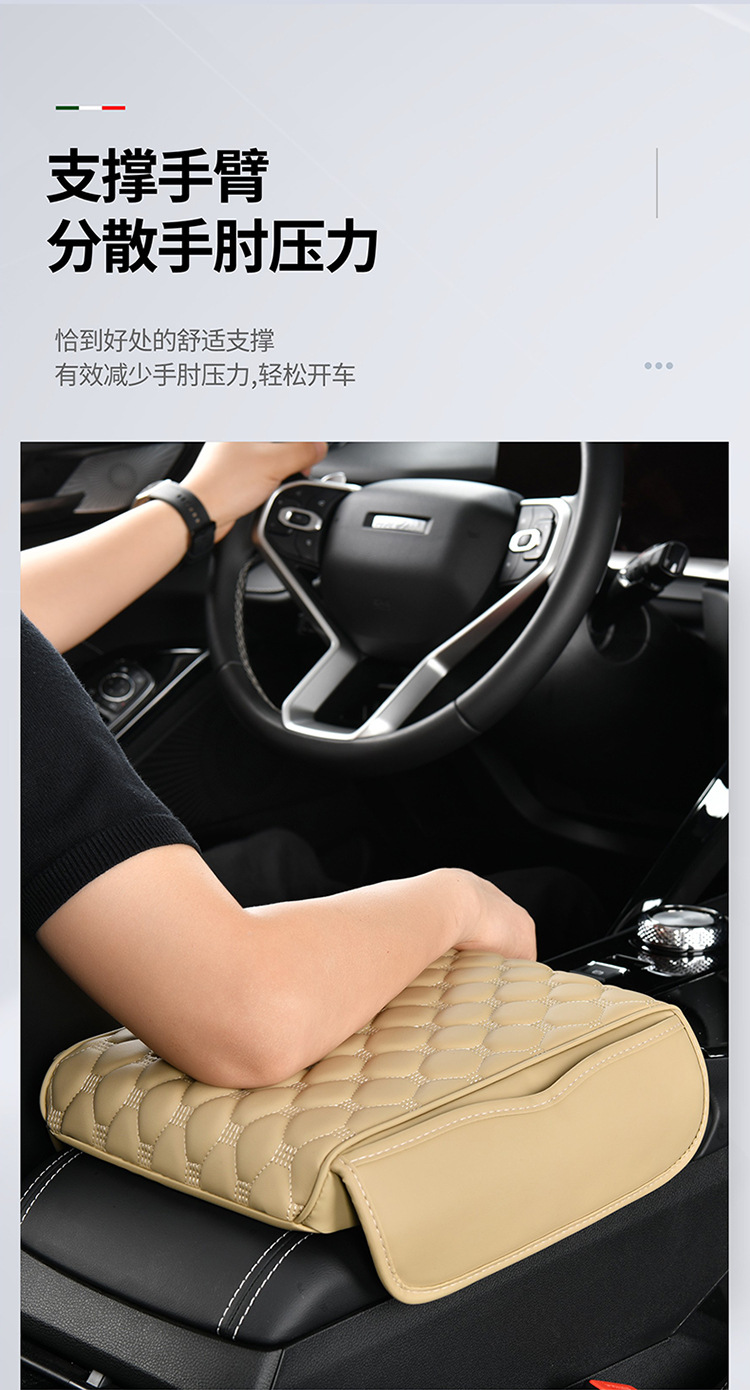 跨境厂家汽车扶手箱垫增高垫透气带侧袋车内中央手肘保护套垫收纳