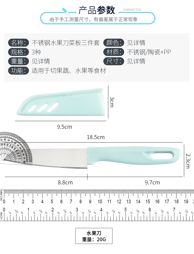 卸売り瓜削り果物ナイフ赤ちゃん補助食まな板セットステンレス果物ナイフ三点セットナイフセットメーカー