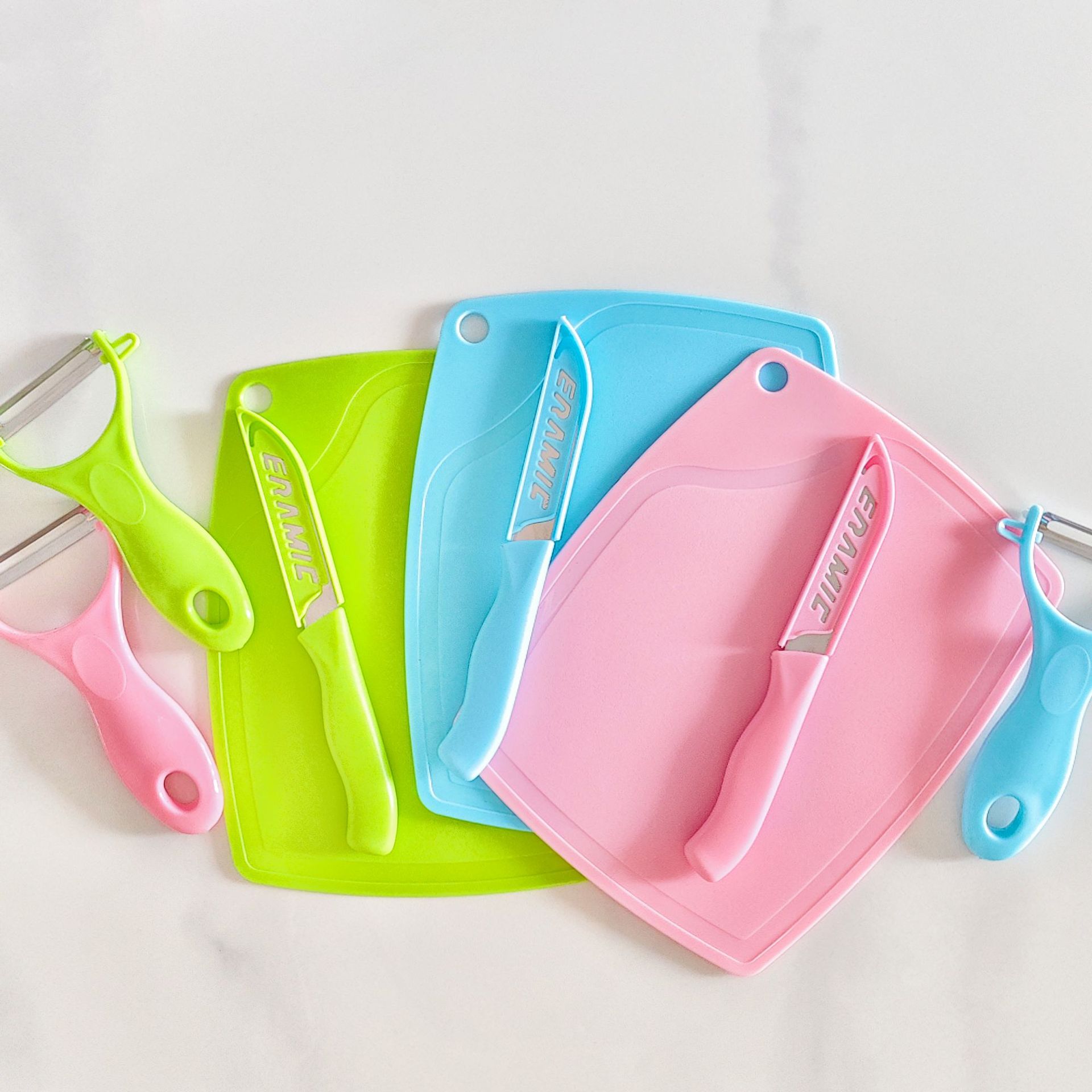 卸売りステンレス刃物セット果物ナイフキッチンはさみ皮むきナイフ4セット家庭用プラスチックまな板メーカー