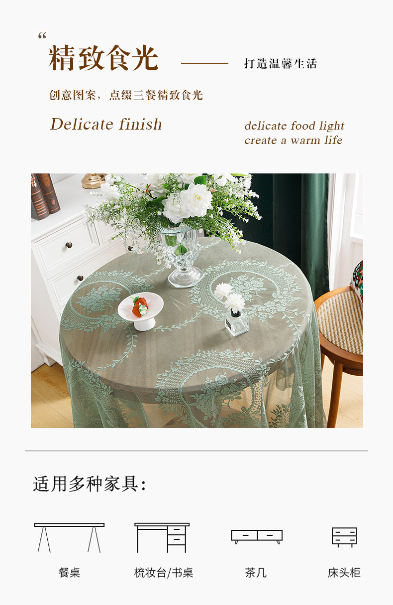新中式グリーン透かし彫りレーステーブルクロス、中国風丸鏡花柄フリルテーブルクロス、小清新レーステーブルクロス、ティーテーブル用