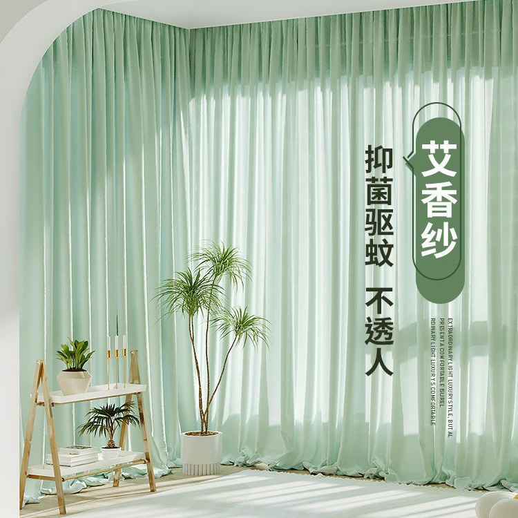 蚊よけガーゼのカーテンは光を通さないで人のカーテンの白い糸の客間のベランダは窓の寝室の白い窓の糸の緑色の高級感が漂っています。