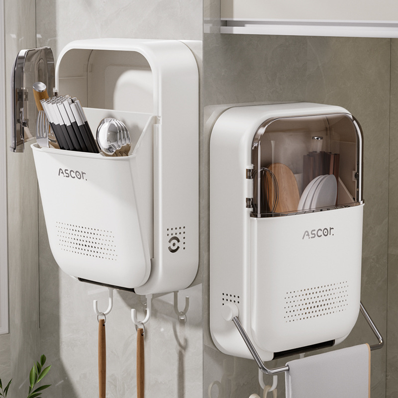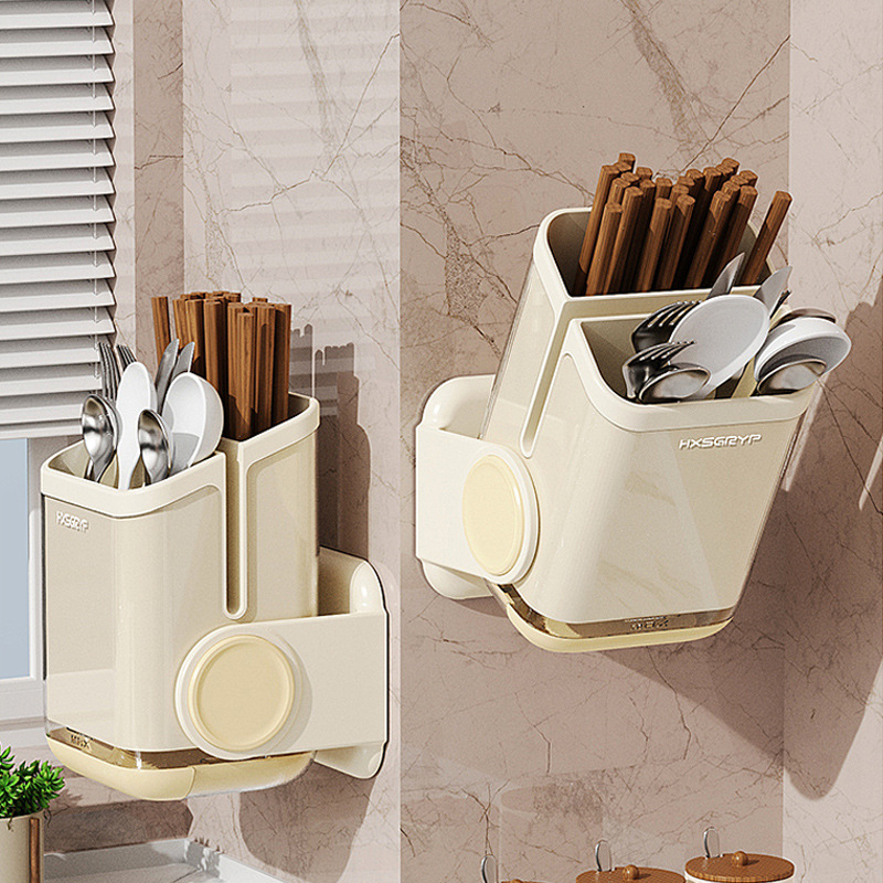 箸収納ボックスキッチン多機能壁掛けパンチフリー防塵箸ケージチューブ箸スプーン排水ラック