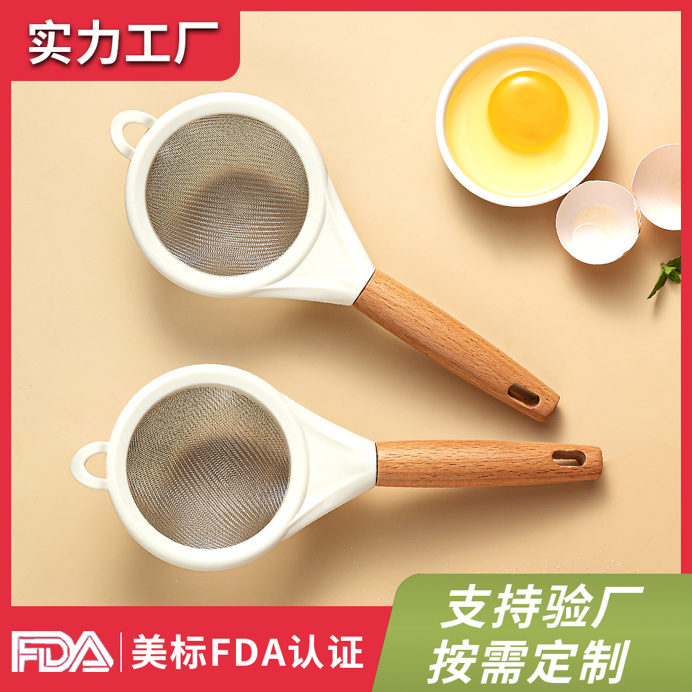 日本製ステンレス鋼ザルキッチンベーキング小麦粉ふるい麺スプーンフィルター卸売木製ハンドルメッシュ排水フィルタークロスボーダー