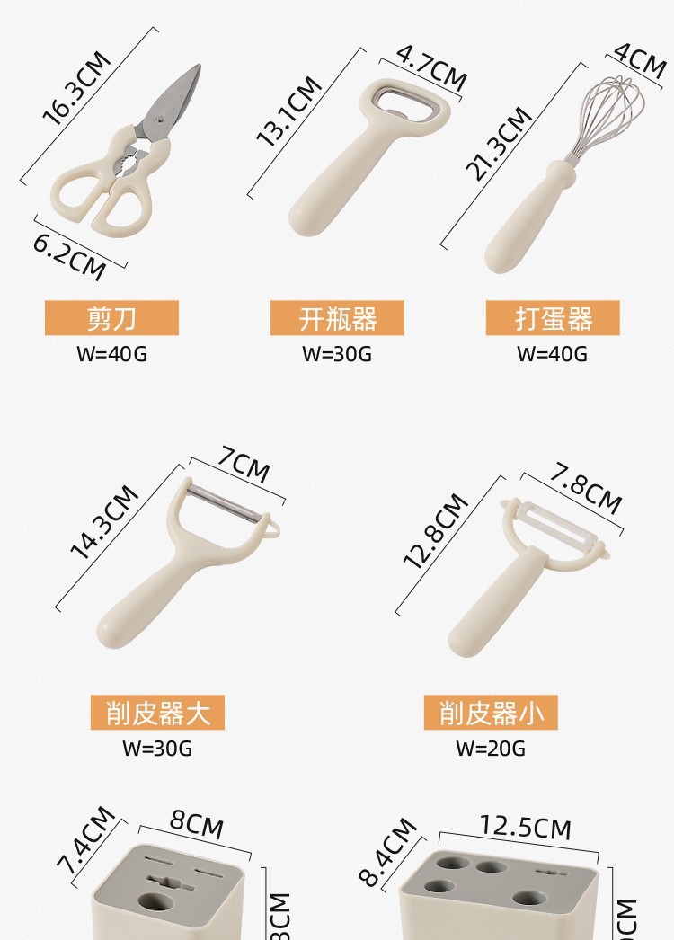 見栄えの良いキッチンガジェット、泡立て器、ハサミセット、フルーツナイフ、果物と野菜のボトルオープナー、収納シート付き