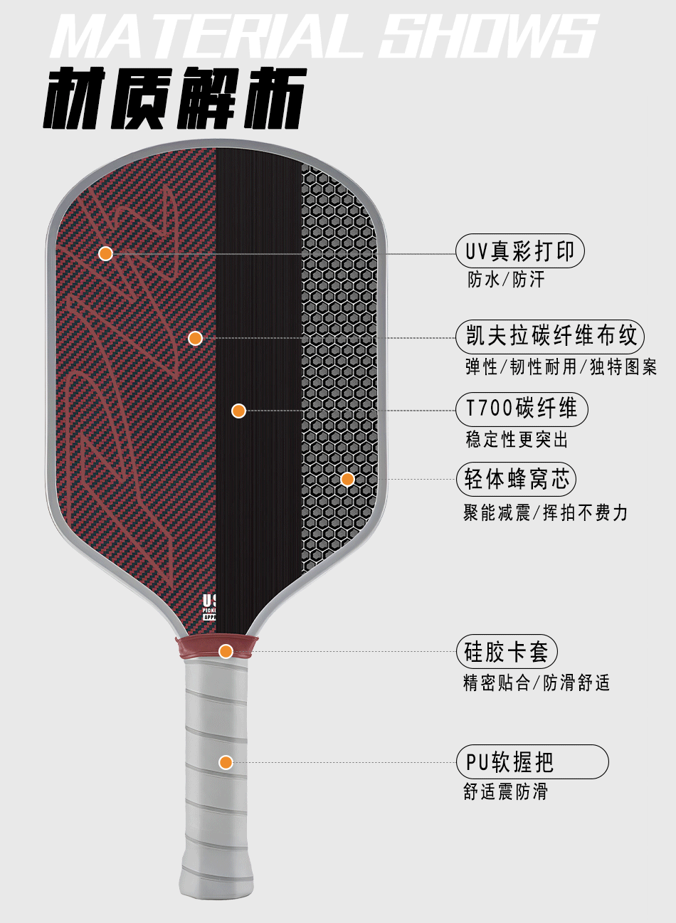 跨境T700碳钎维匹克球拍蜂窝板赛事级pickleball源头厂家匹克球拍