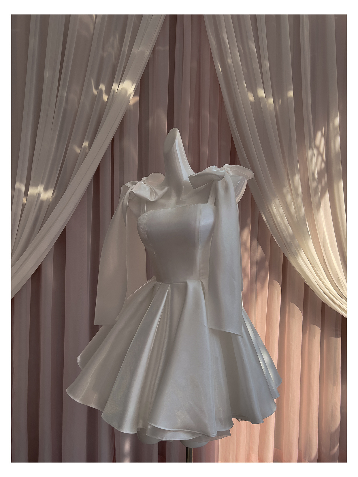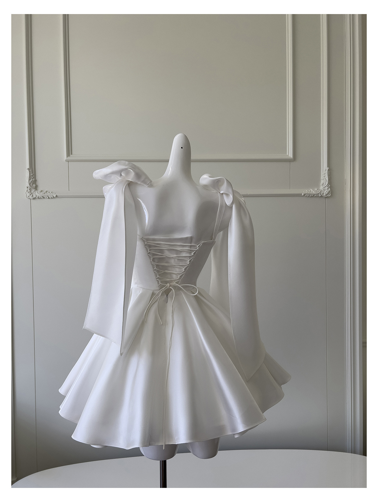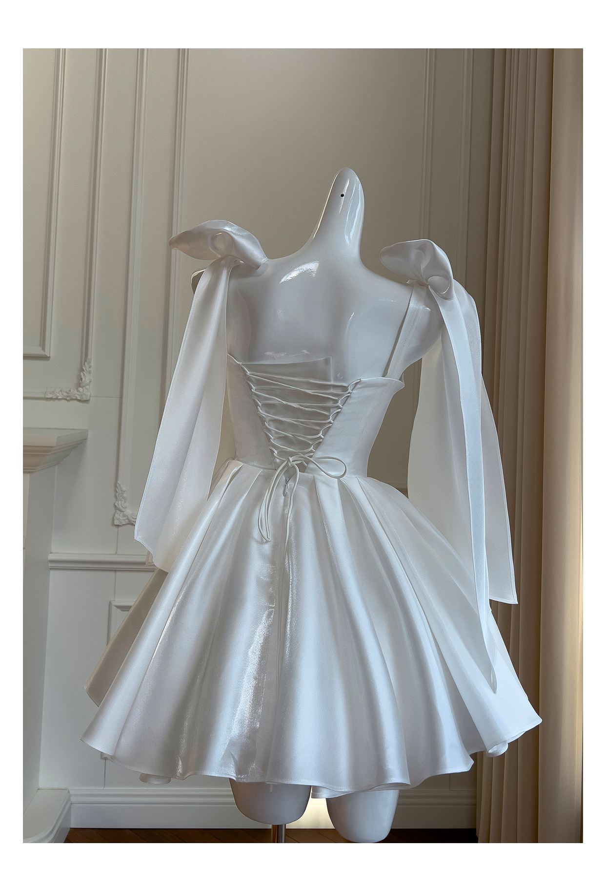 2026年新作レディースシンプルニッチミディアム丈イブニングドレス、宴会や旅行撮影に最適なサテン生地の白いフォーマルドレス
