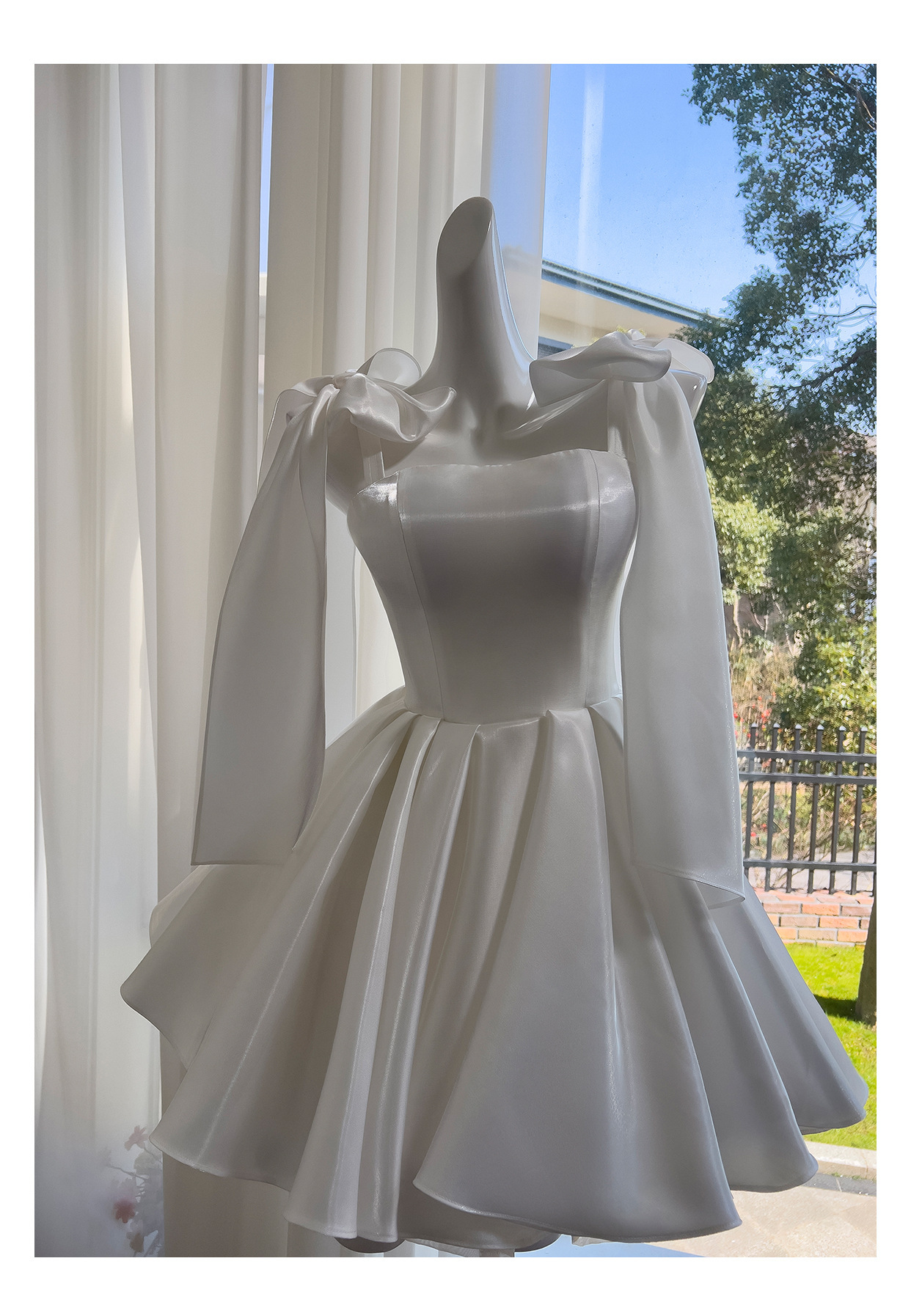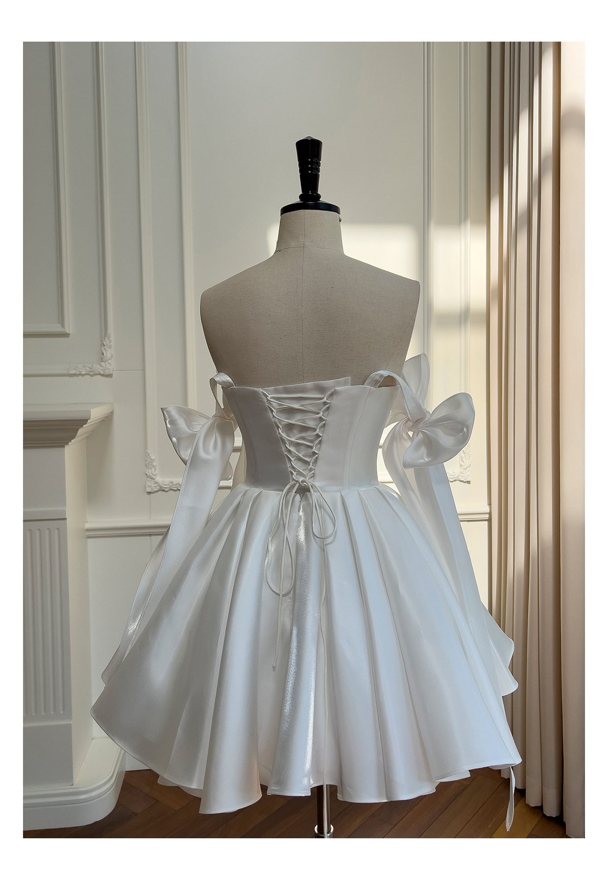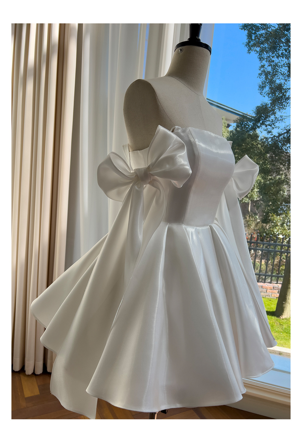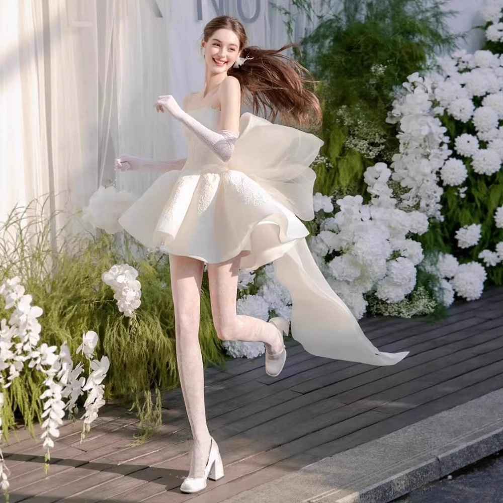 白いチューブトップモーニングローブ新しいスタイルの小さな婚約ライトウェディングドレスハイエンド成人式誕生日宴会リボンスカート