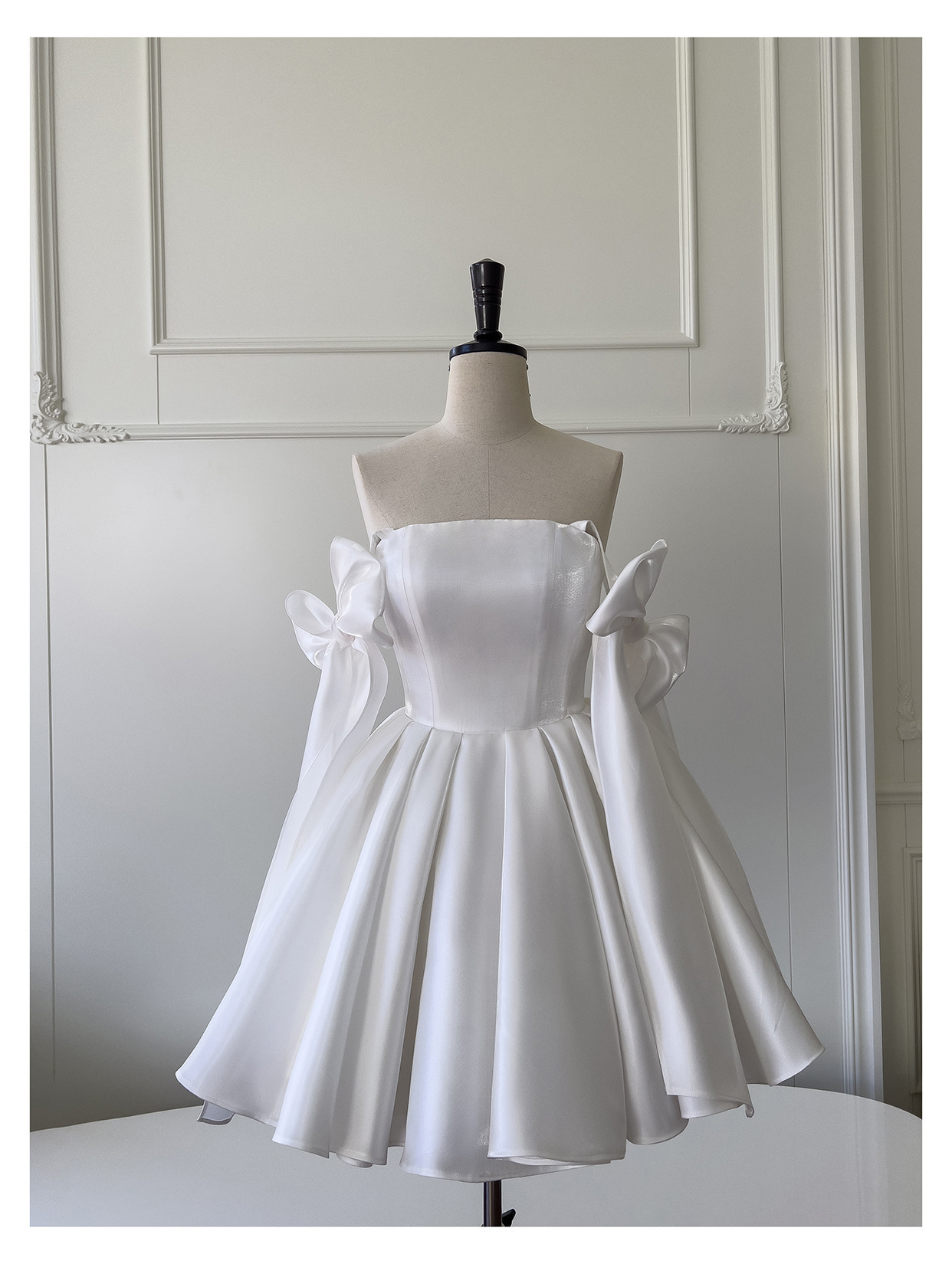 2026年新作 チューブトップ サテン ショートドレス ヘップバーン風 エレガントな黒のミニドレス パーティードレス シスタードレス イブニングドレス