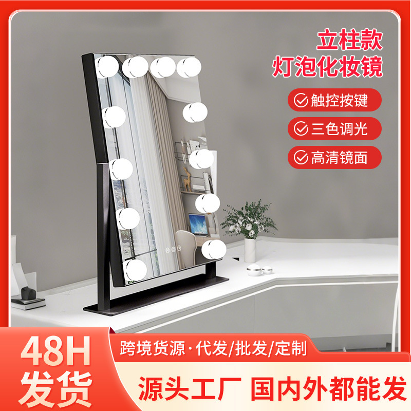 跨境热销单面12灯化妆镜台式led灯三色可调节美妆梳妆镜 一件代发