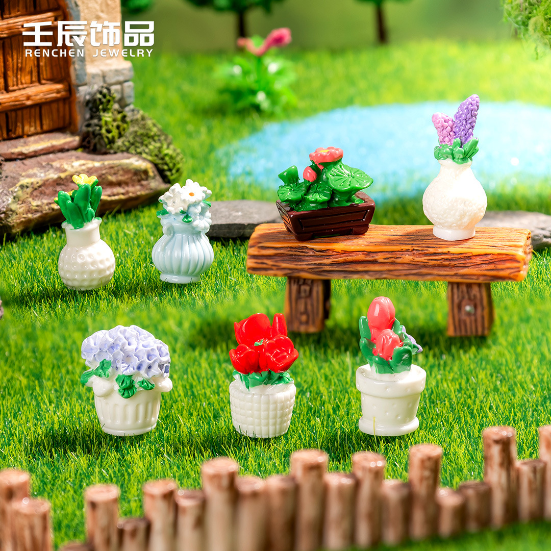 创意ins风仿真花束小盆栽树脂工艺diy饰品小配件装饰桌面车载摆件