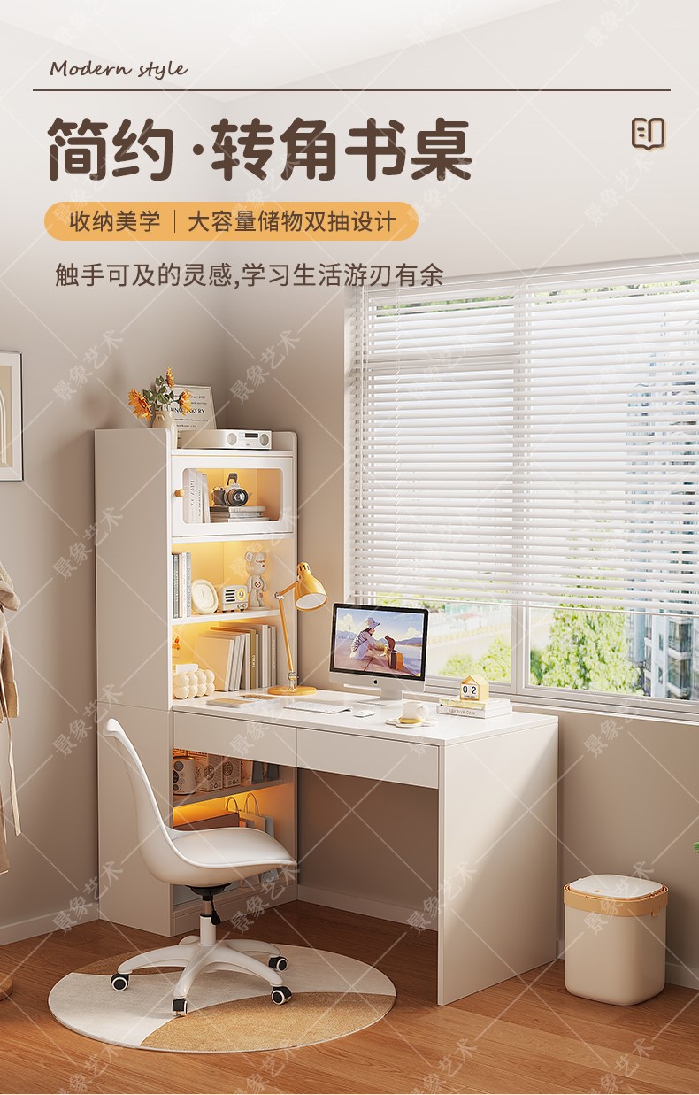 コンピュータデスク家庭用デスクデスクデスク本棚一体型学生学習テーブル小戸型コーナー本棚一体型テーブル