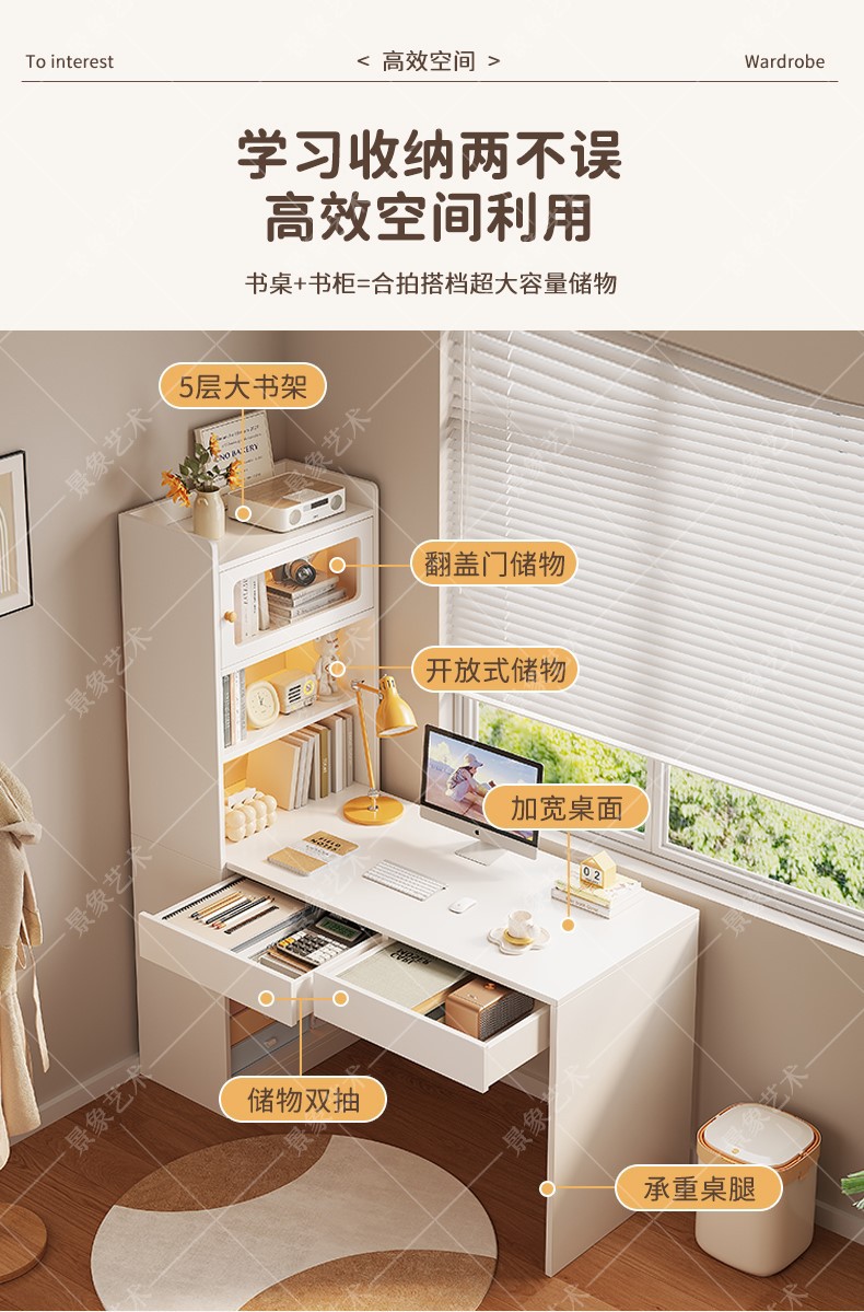 デスクホーム本棚一体型モダンシンプル収納ラック付き学生学習テーブルシンプルなライティング学習コンピュータデスク