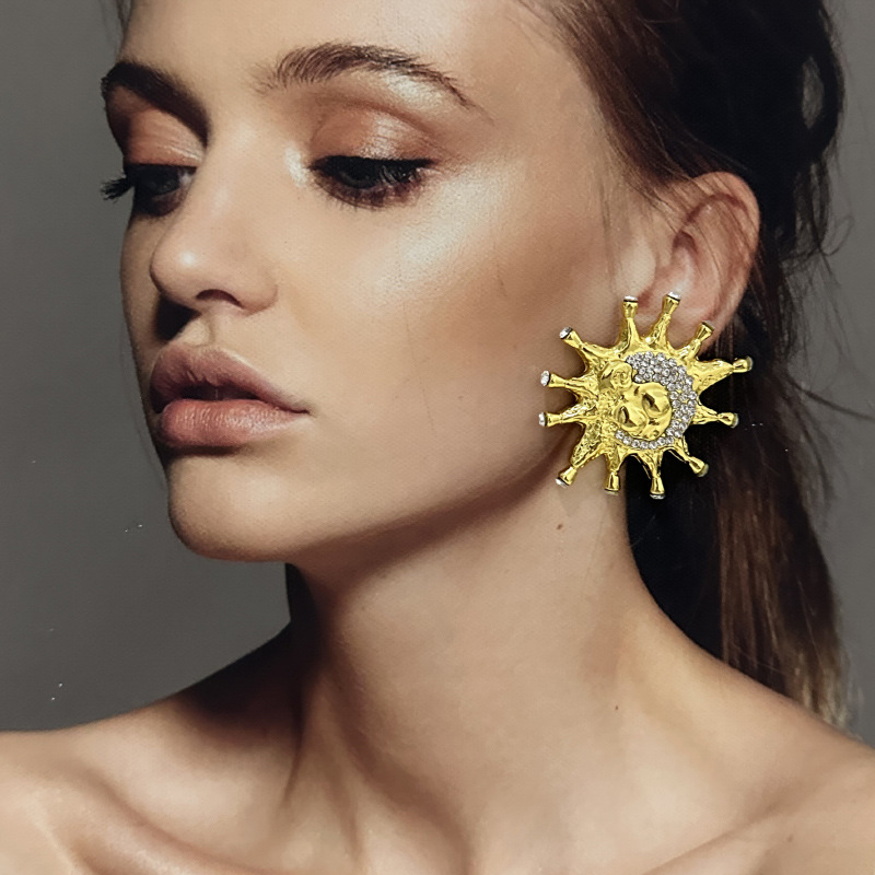 法式复古小众个性人体艺术不对称太阳花耳环独特气质时髦夸张耳饰