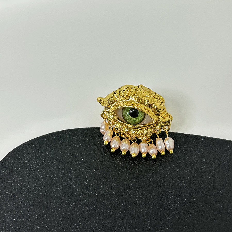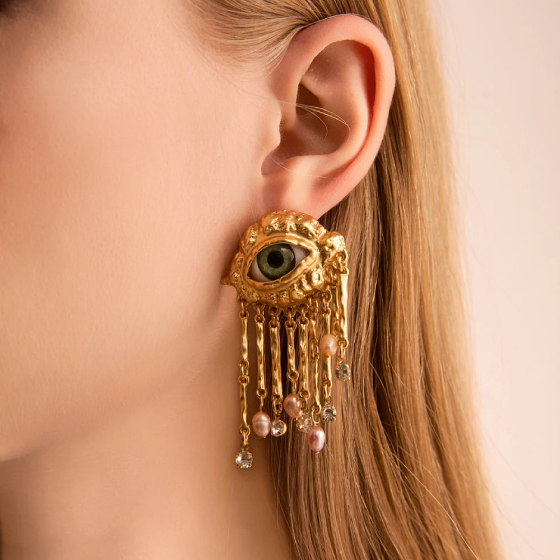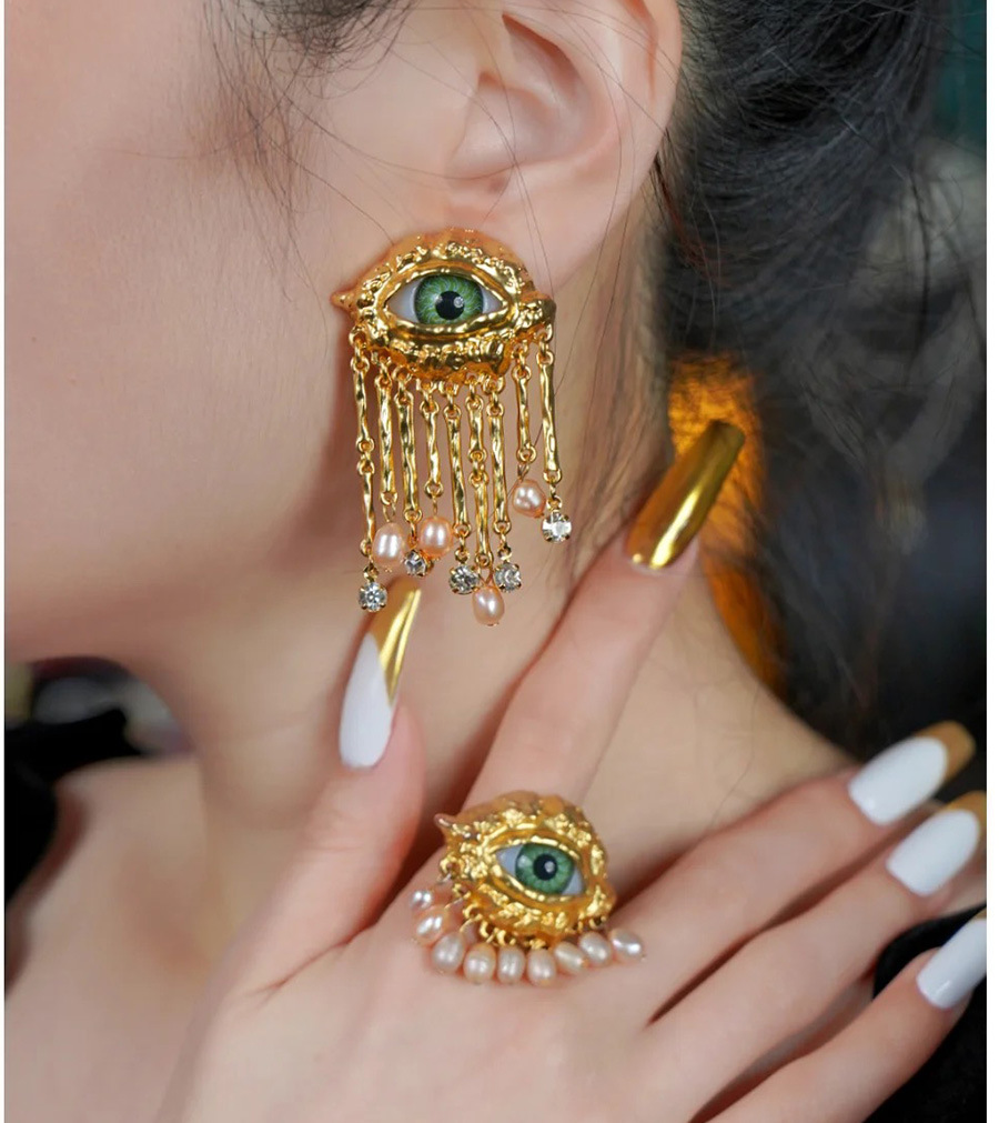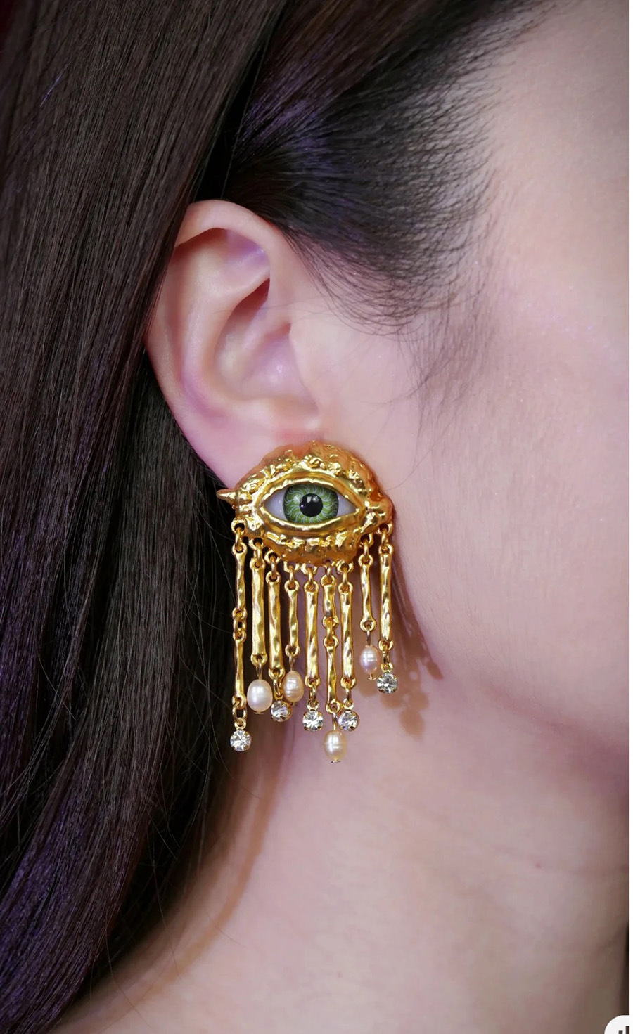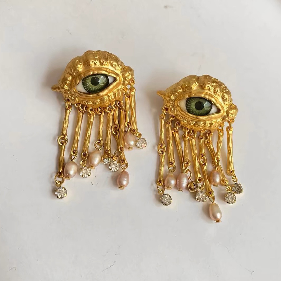 中古の個性的な悪魔の目の真珠のタッセルのイヤリングは軽くて豪華で高級感があります。