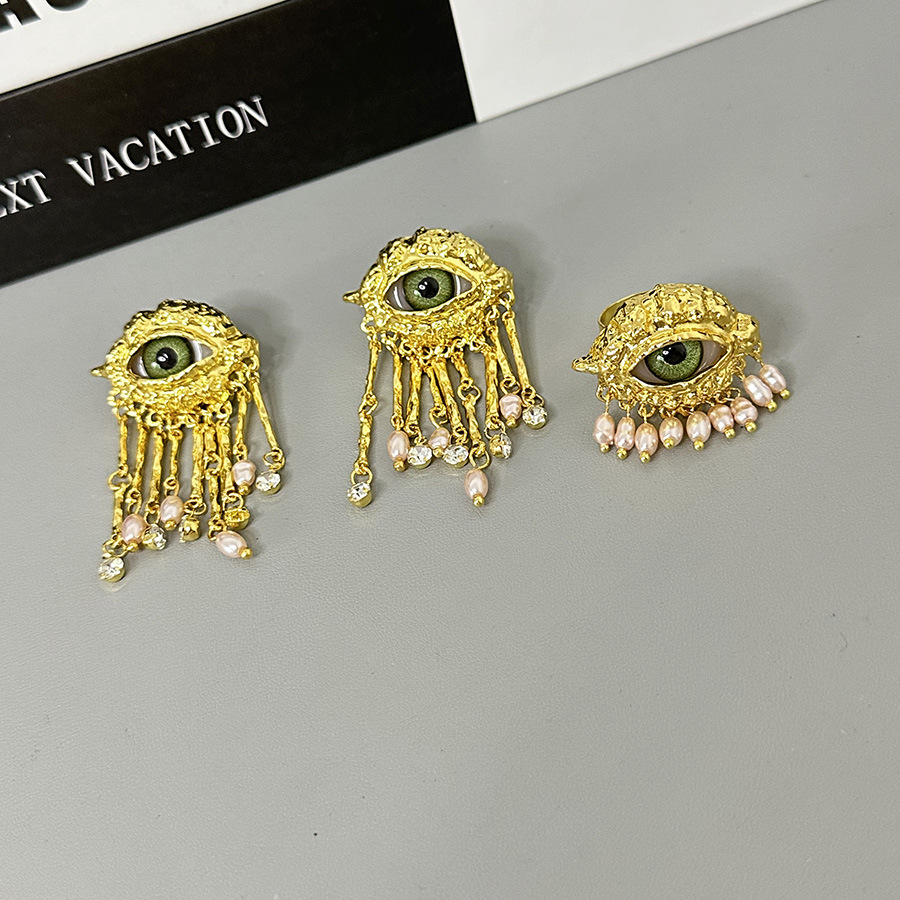 欧米の誇張した個性の閃光のイバラの悪魔の目のイヤリングの復古の軽い贅沢な口の指輪のブローチのイヤリングのセット