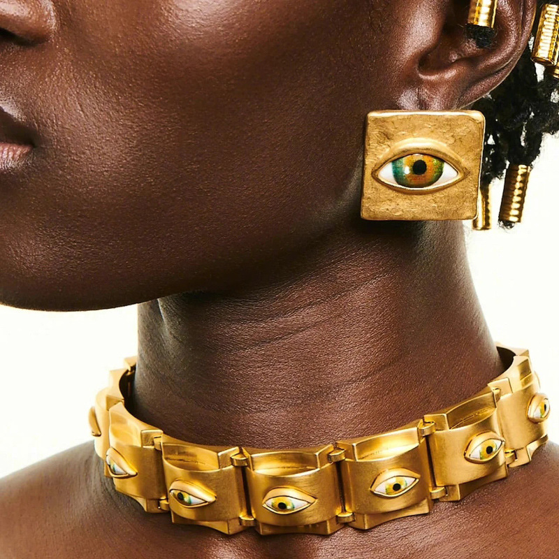 欧美小众复古独特个性金属方块恶魔之眼耳环简约时尚气质耳钉耳饰