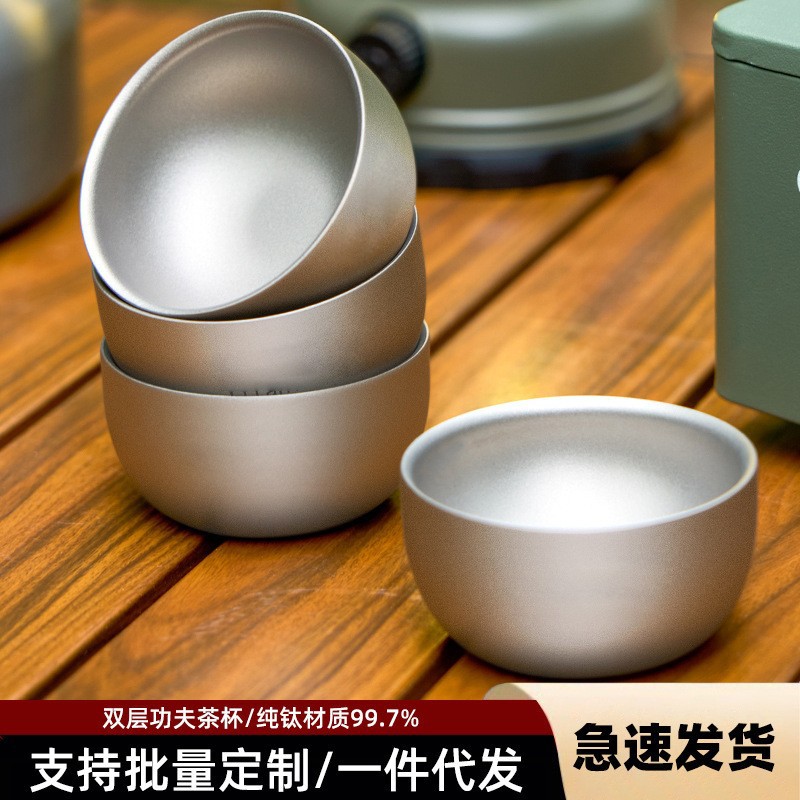 純チタン二層の小さいお茶の杯の屋外のキャンプのお茶の杯の工夫のお茶の杯はお茶を飲んでお茶を入れます。