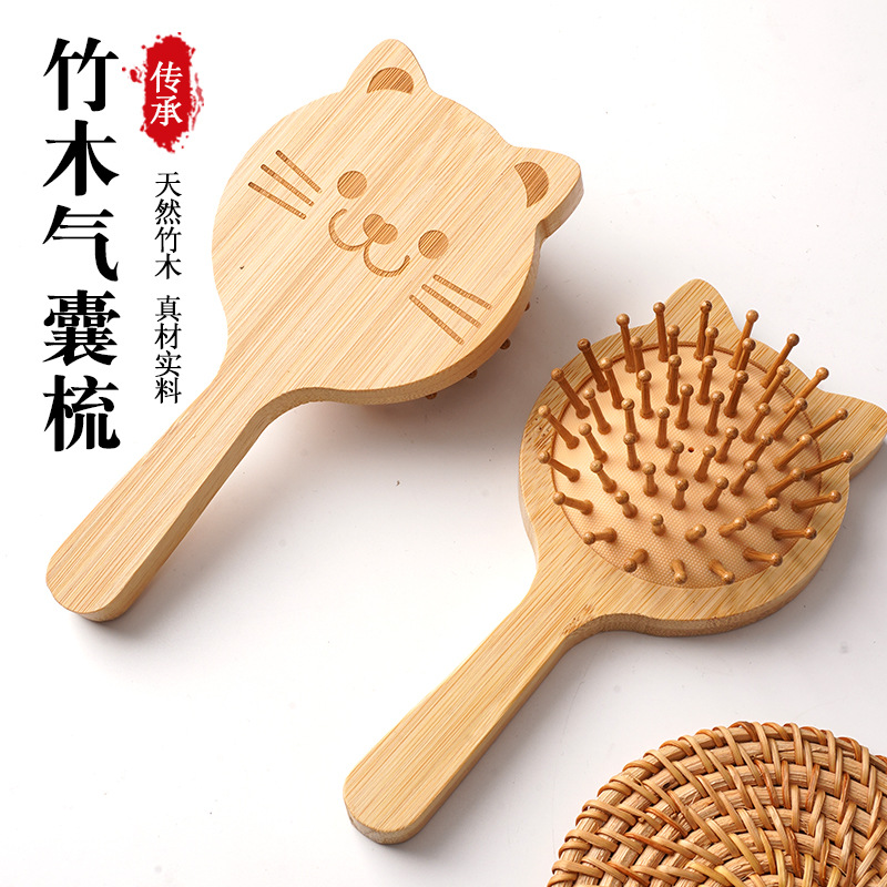 かわいい子供の櫛猫の形の櫛のクッション櫛楠竹のクッションマッサージ櫛携帯エアバッグ櫛