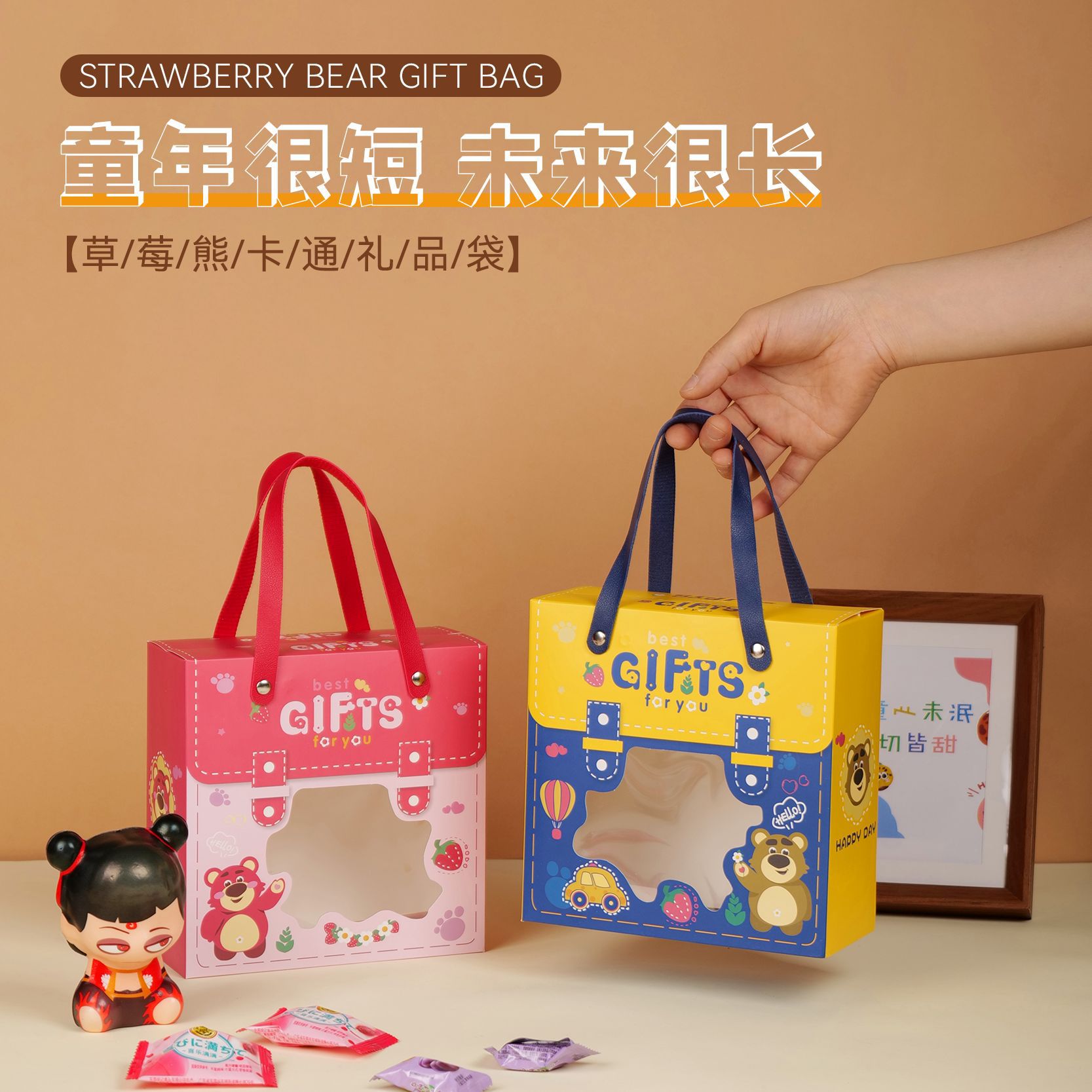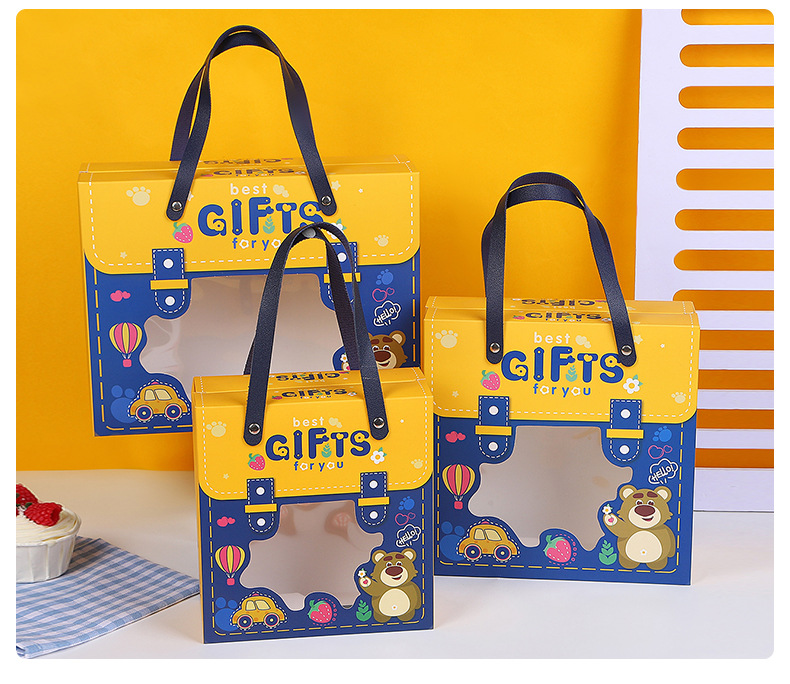 新款宝宝满月回礼盒 卡通图案抽屉盒 手提六一儿童节礼物盒生日