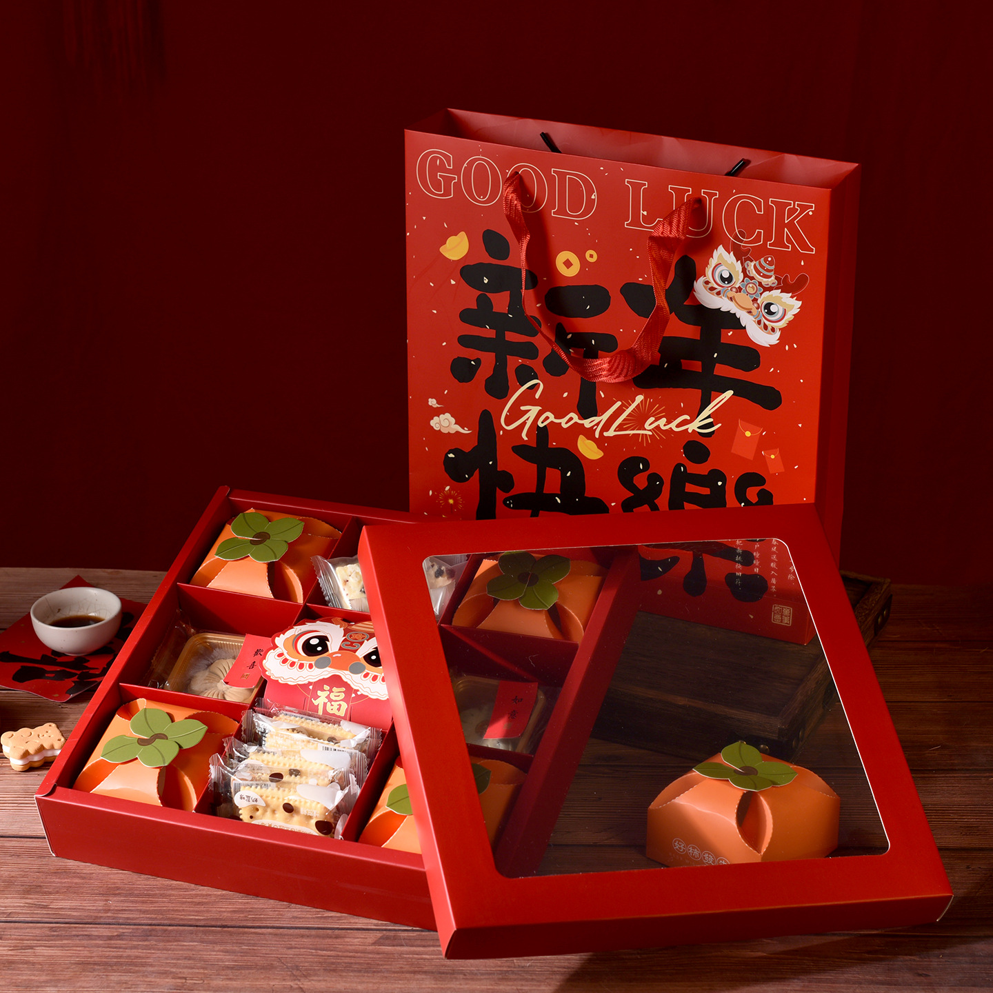 2026年馬年春節中国風菓子包装箱焼き菓子クッキー雪花餅もち米船PETギフトボックス