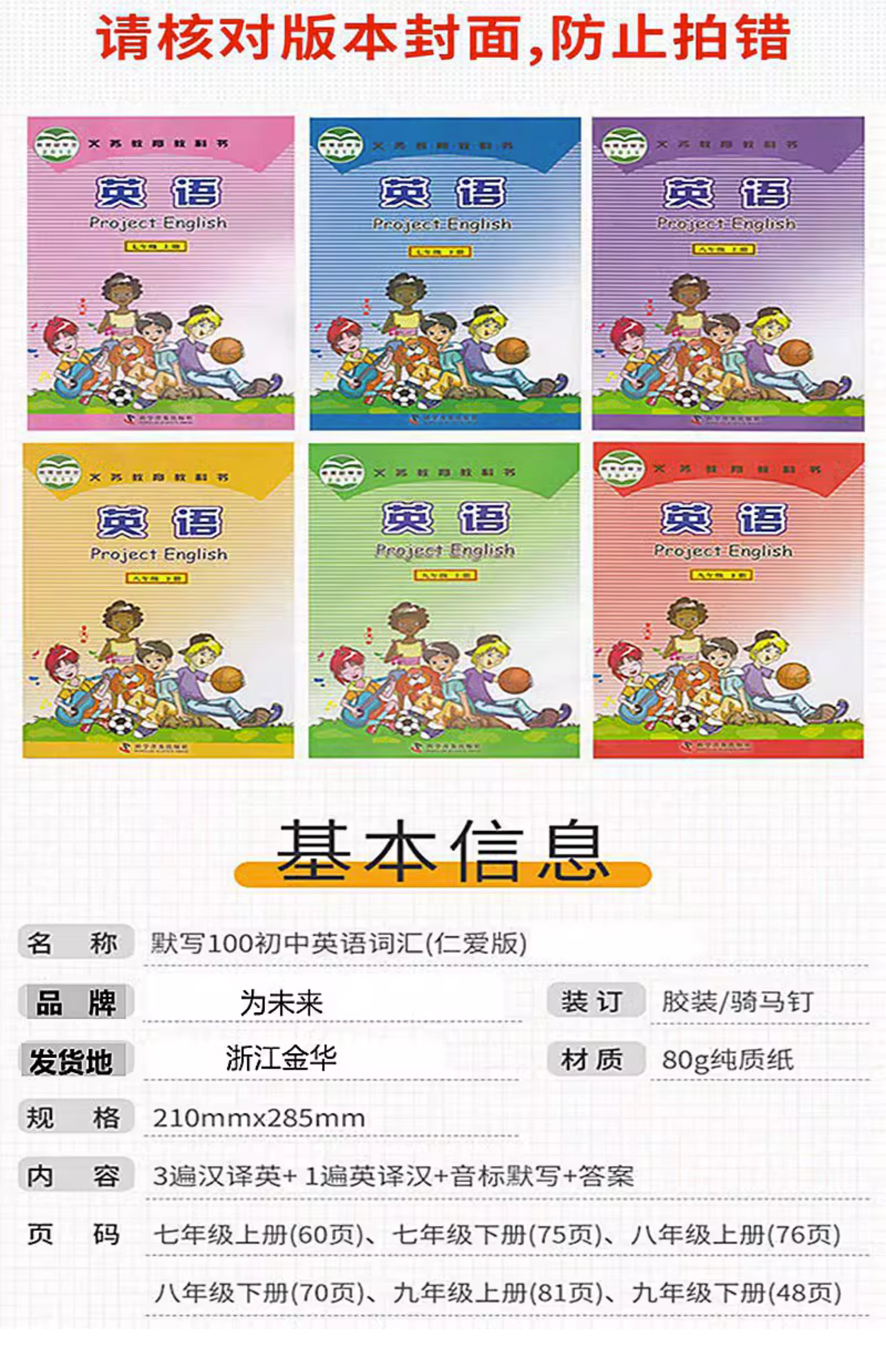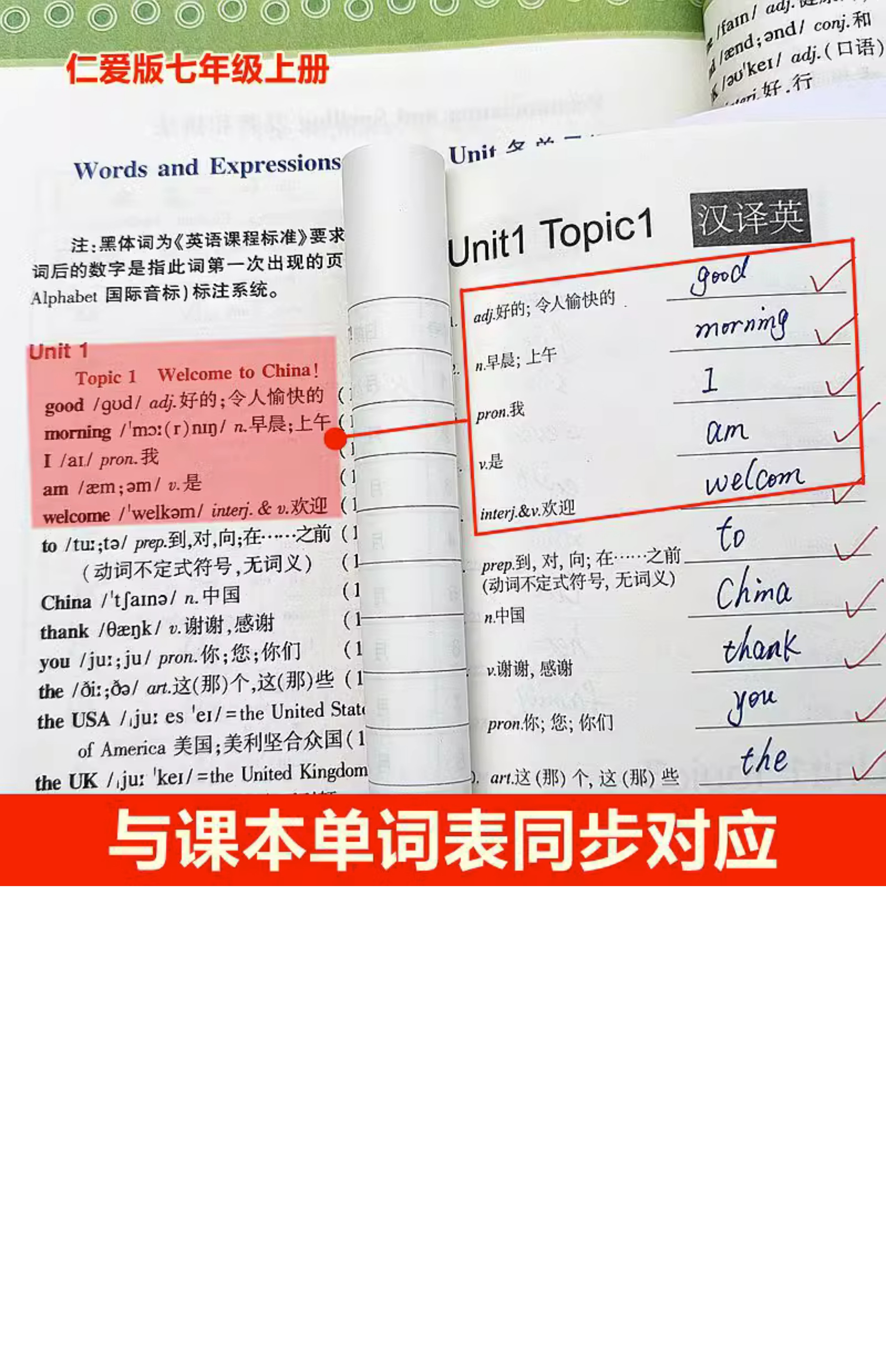 仁愛版中学校英語単語黙書本七八九年級上巻音標句練習帳練習字帖