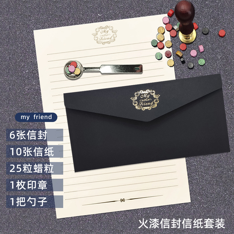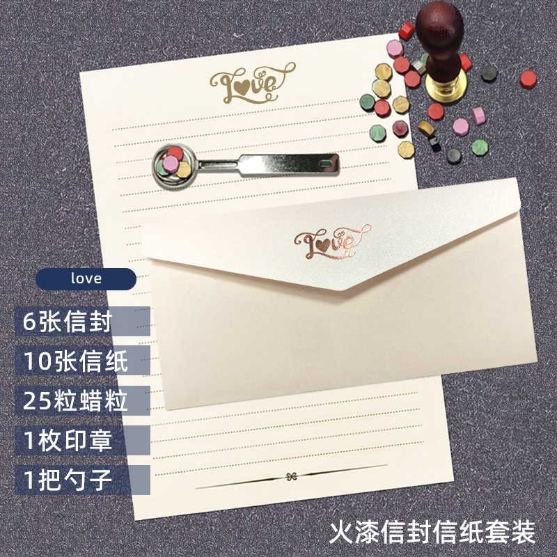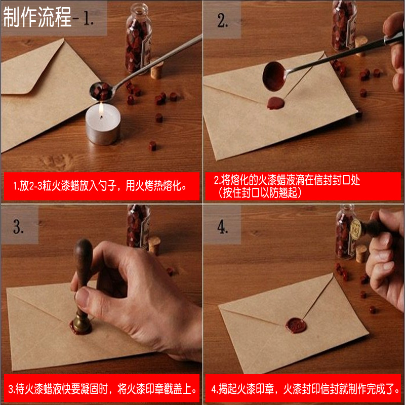 文芸レトロなラブレター封筒の便箋の火の漆は印鑑を密封します。
