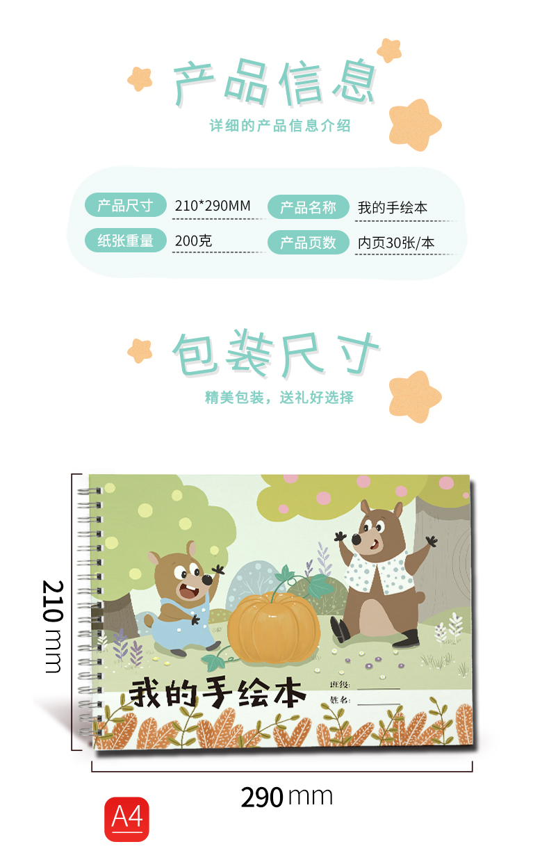 子供絵画日記本空白絵本絵本手描き本塗り絵本幼稚園硬殻創意絵本