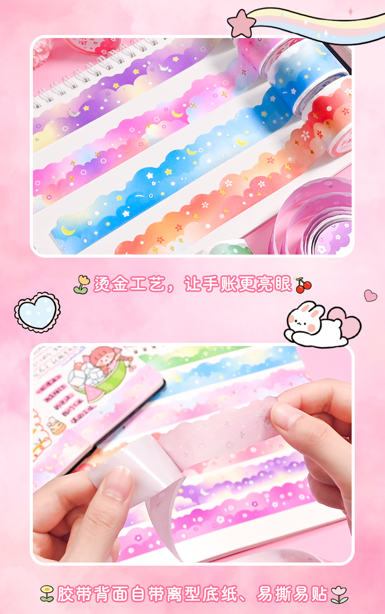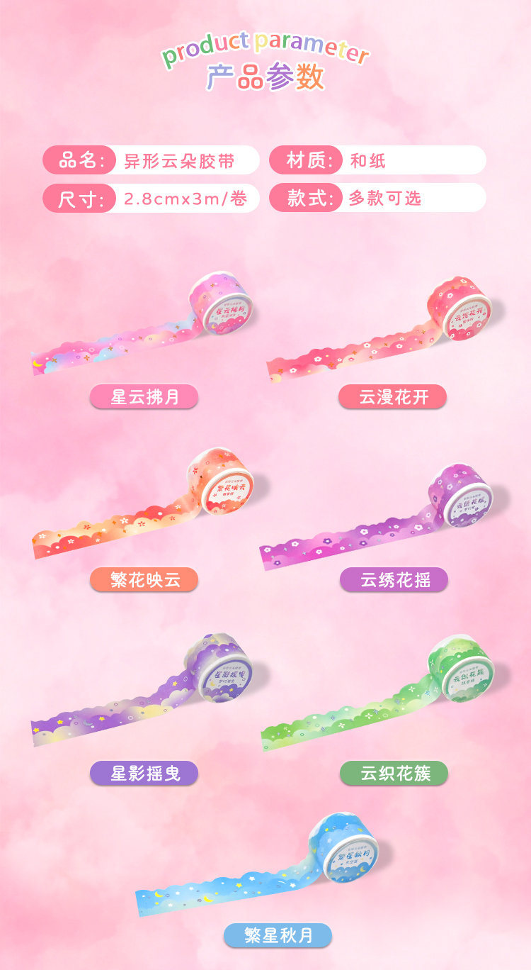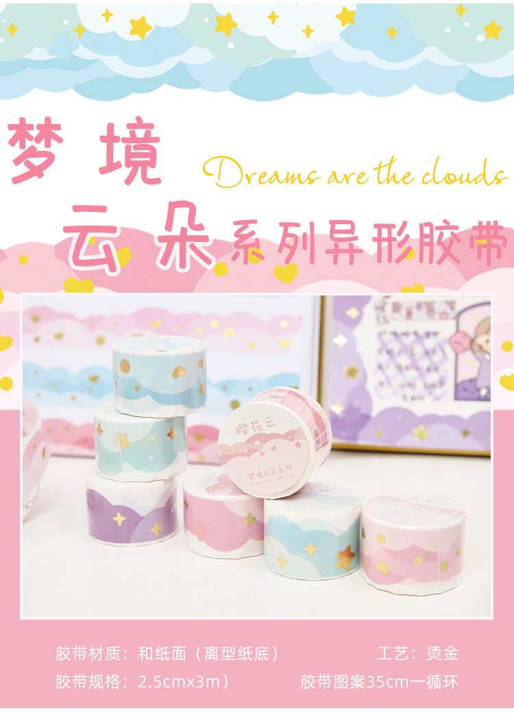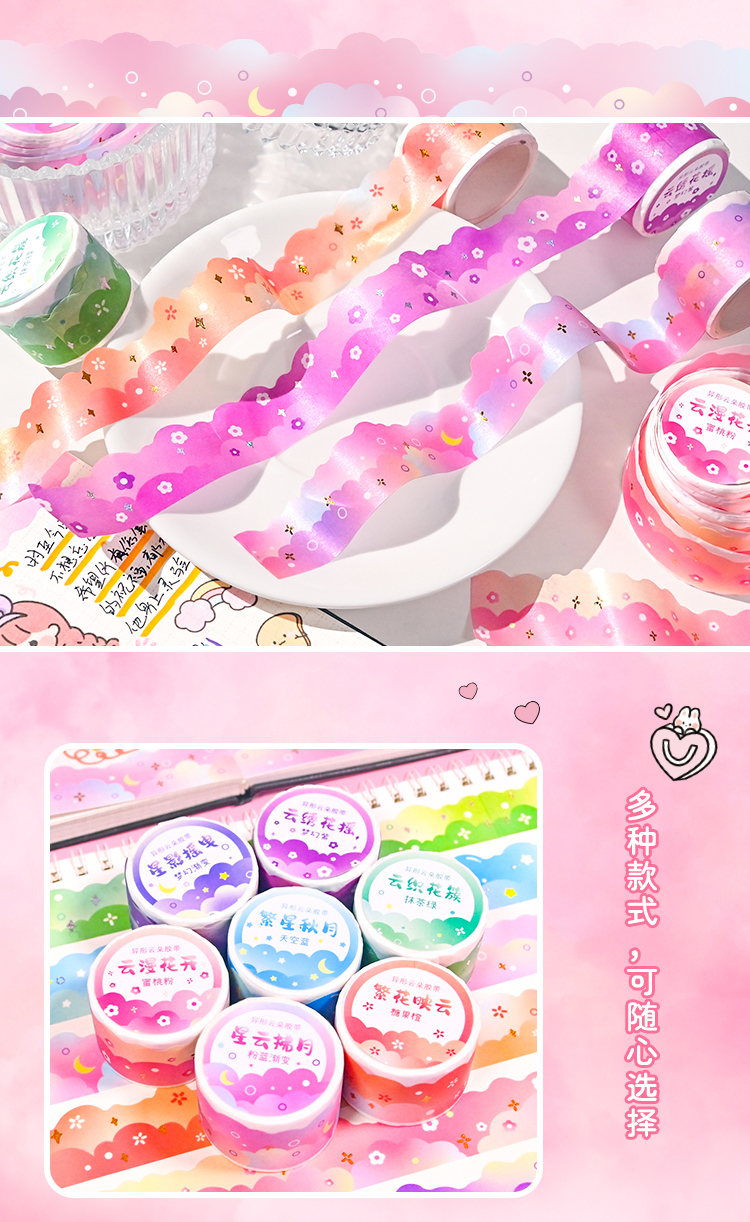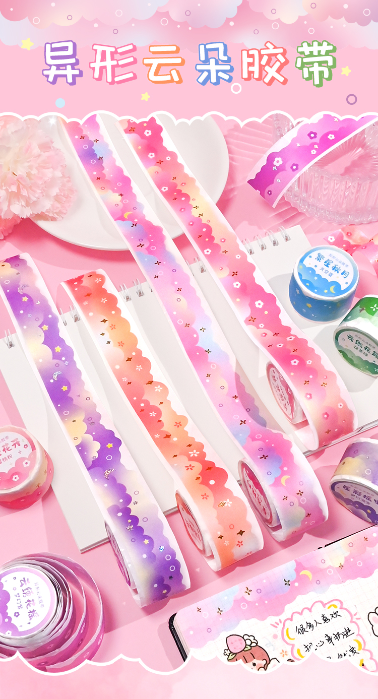 夢幻雲テープレース手帳シール異形波枠造景手帳フィルム素材装飾ステッカー