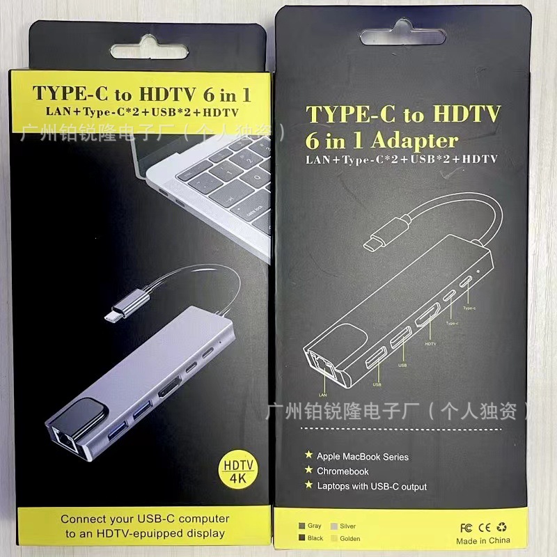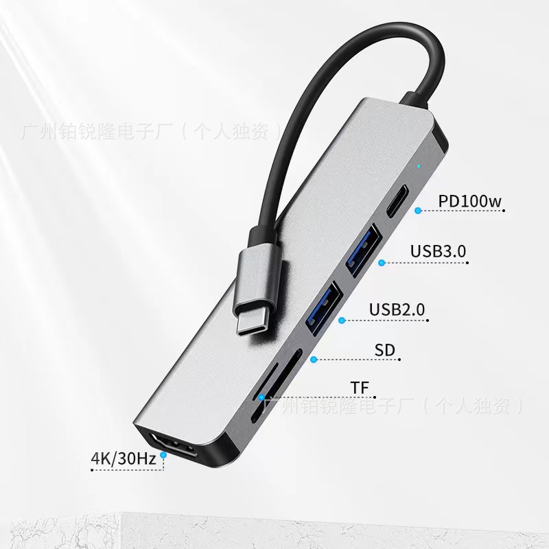 実力工場卸売ノートパソコン拡張インターフェースtype-c 6in1ハブ/拡張ドック