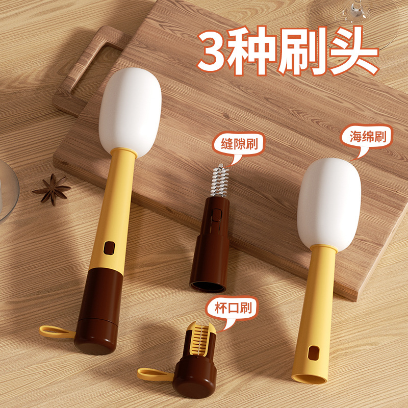 マイクカップブラシ三合一カップ口の隙間カップカバーブラシカップ神器哺乳瓶洗浄スポンジカップブラシ
