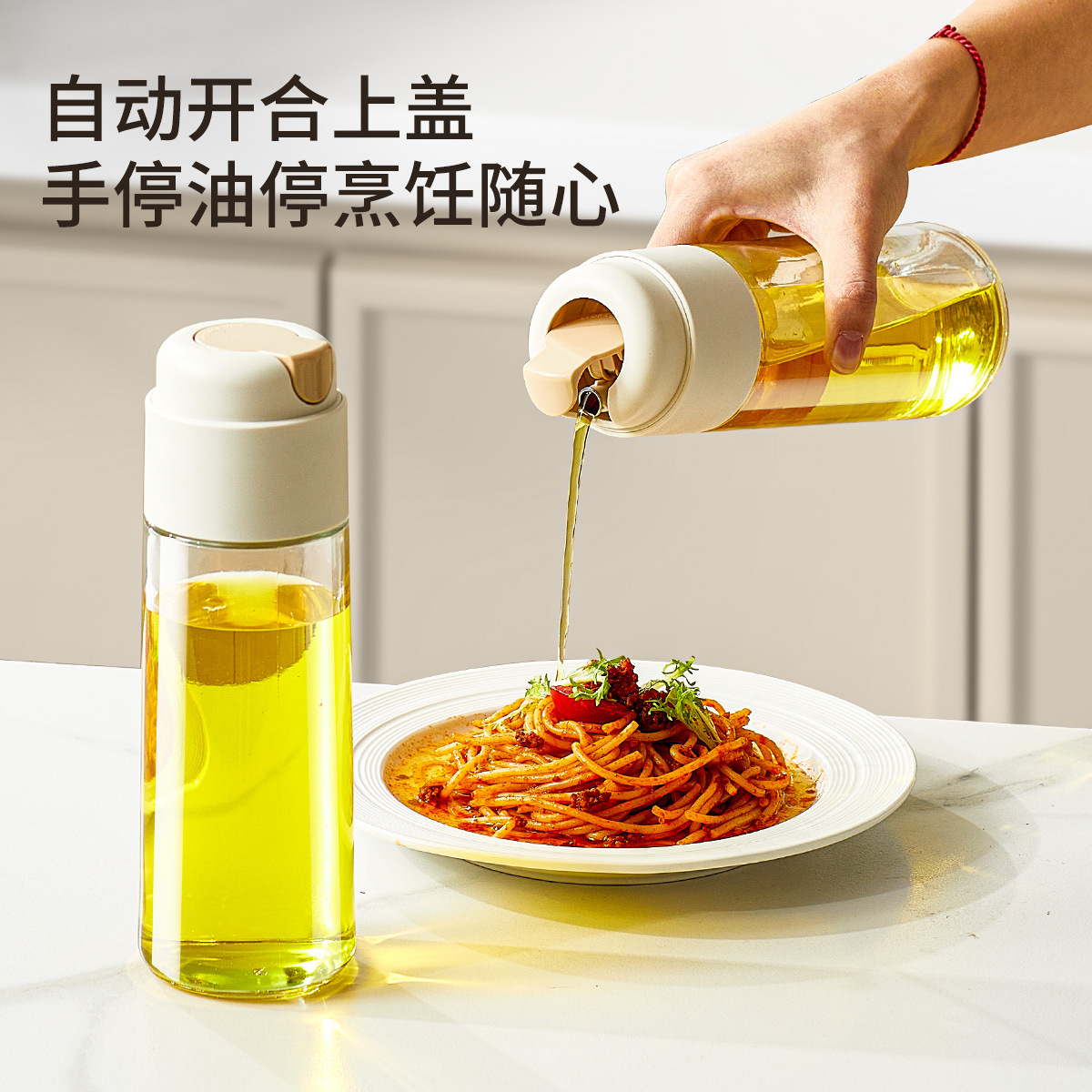 ガラスオイルポットは自動的に開閉して油を掛けない家庭用醤油酢調味料瓶台所のオイルボトルは油が漏れない小さなオイルポット