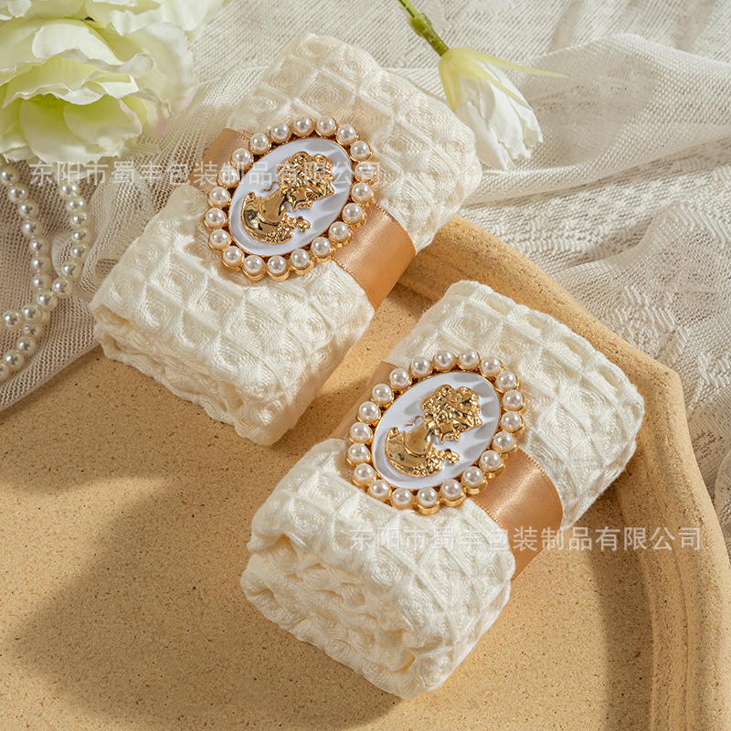 結婚式のお土産のタオルの精巧なレトロな美人の顔のお祝いのお土産のギフトボックスとロココのタオルの卸売り
