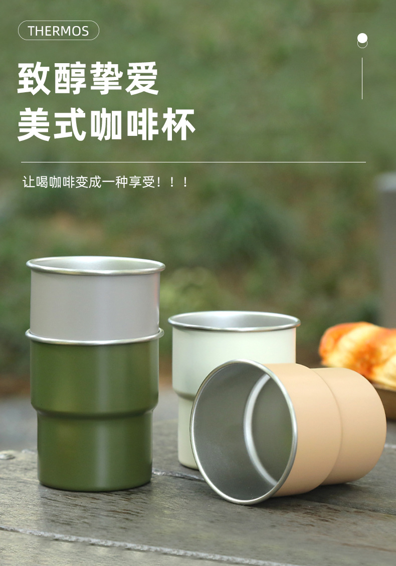 304 ステンレス鋼アメリカンコーヒーカップ、ポータブルで便利なアウトドアキャンプカップ、単層カールエッジ断熱カップ、レトロスタイル
