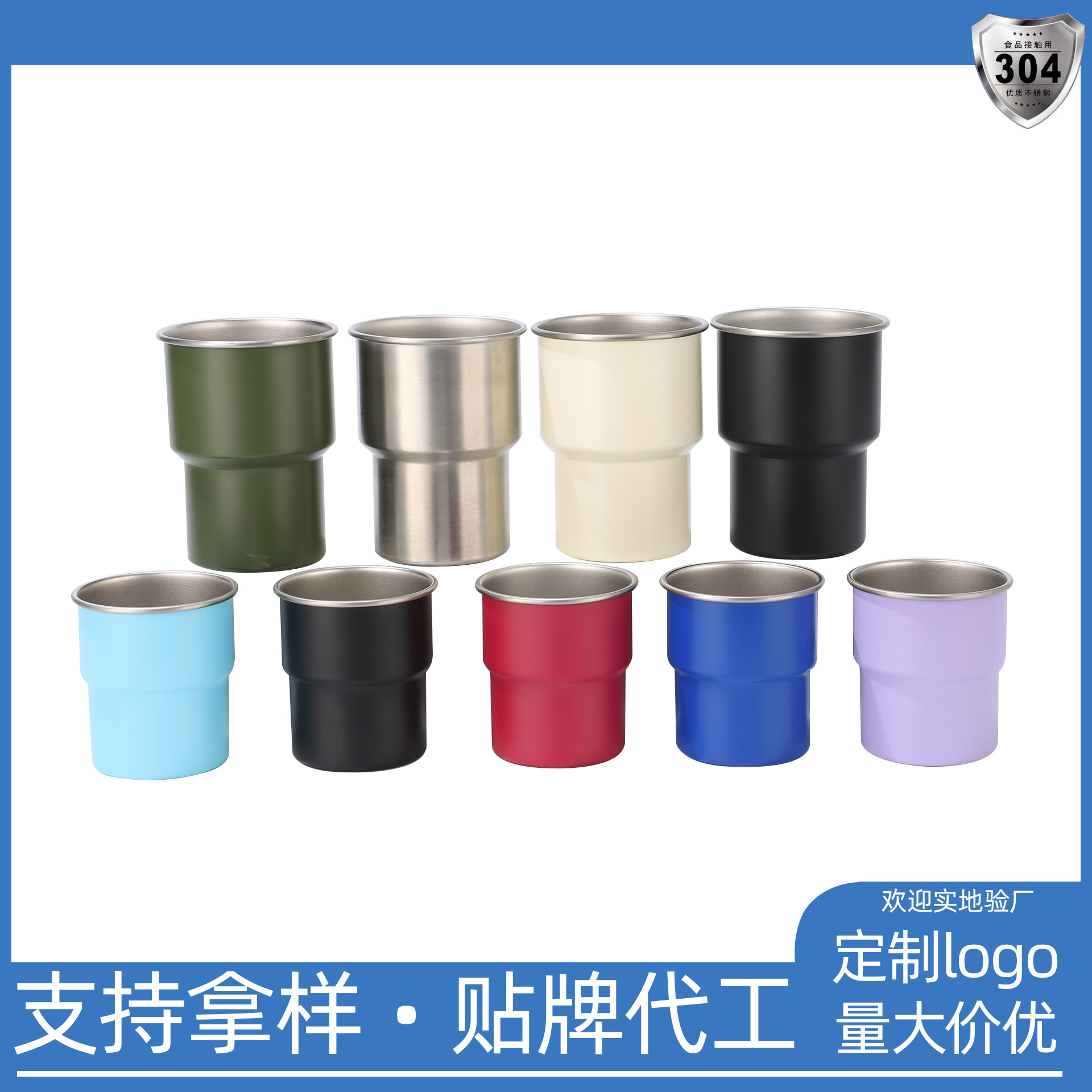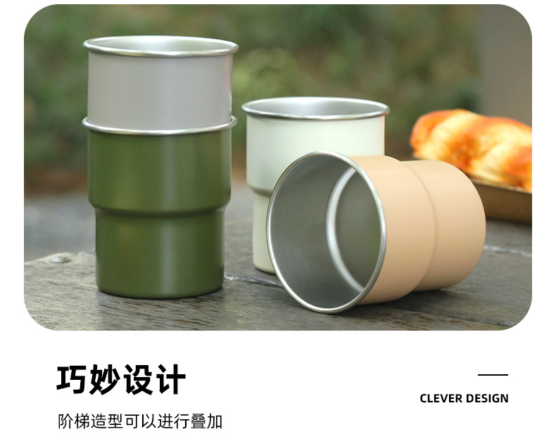 304不锈钢台阶杯单层卷边咖啡杯户外便携水杯随行露营野餐啤酒杯