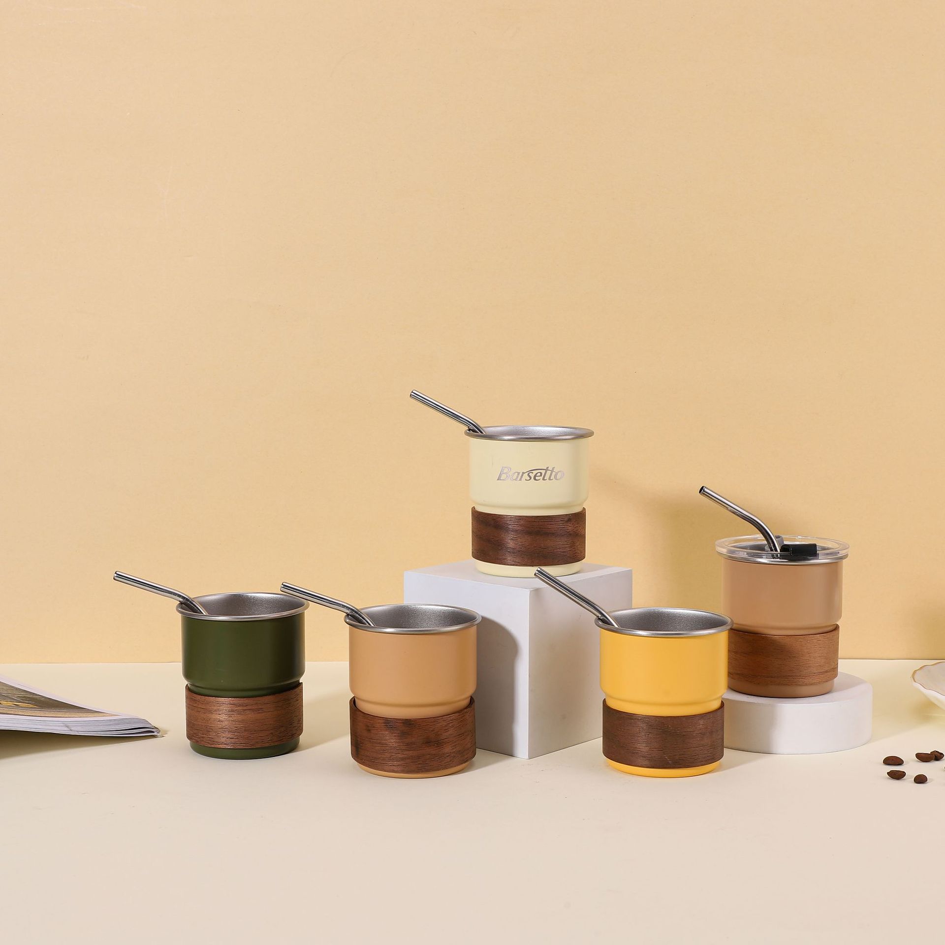 304ステンレスコーヒーカップ蓋付きストローカップ携帯屋外キャンプins風ハンディカップアイロン防止ステップカップ