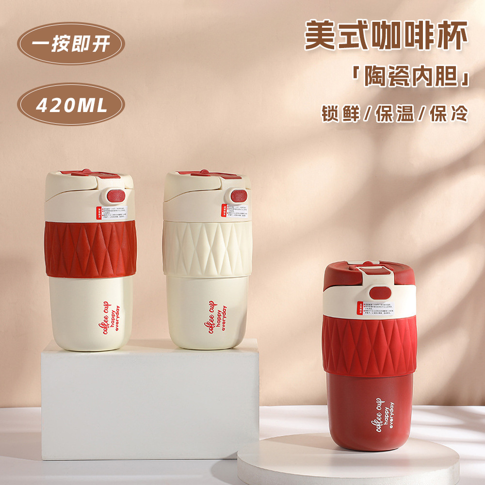 ディザトーン新型アメリカ陶磁器内胆保温カップ屋外携帯随行カップシンプル真空ストローコーヒーカップ