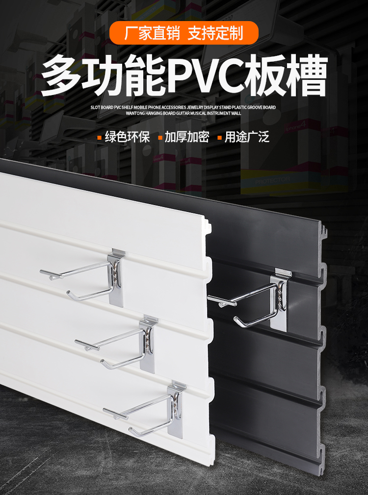 Pvc溝板展示棚プラスチック溝板万通坑掛板ギター楽器上壁携帯電話部品アクセサリー棚
